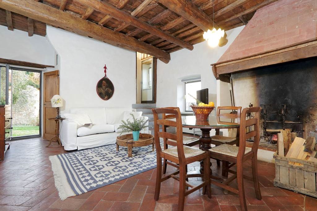 La Canonica (4+2 posti letto - 99 mq) con giardino con tavolo e sedie, il soggiorno con camino e divano letto matrimoniale, la sala da pranzo, la cucina (lavastoviglie), una camera matrimoniale con bagno con doccia, una camera matrimoniale e un bagno con vasca idromassaggio.