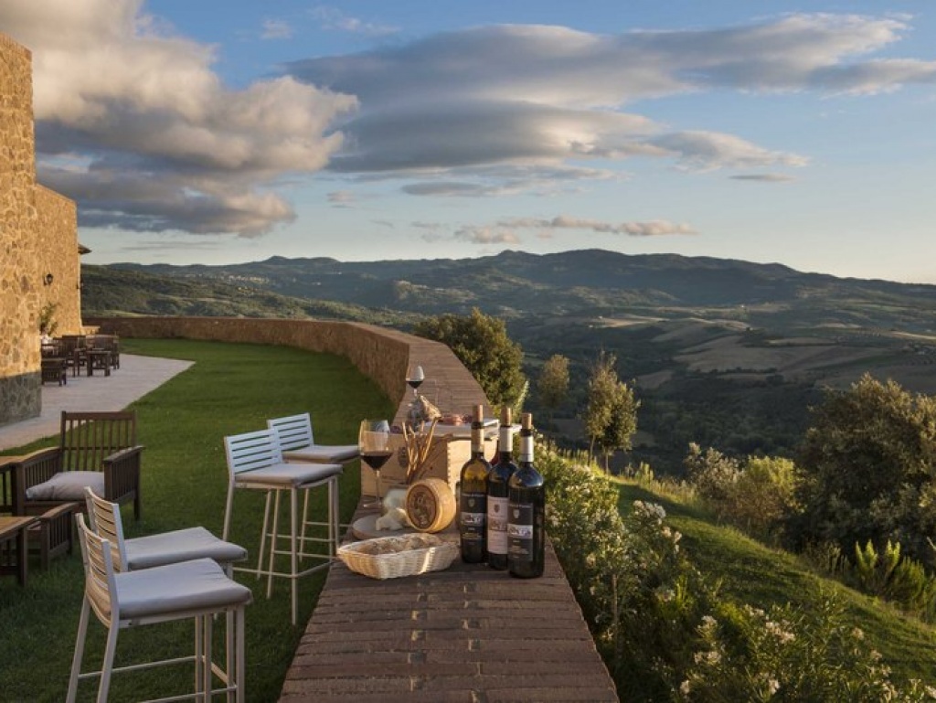 Ambientato nella nuova ala del Castello, l’elegante ristorante gourmet Settimo Senso dispone di 120 coperti e una terrazza panoramica disposta ad ovest che si affaccia sulla Val d’Orcia. Da qui, al tramonto è possibile godere di un panorama unico che fa da cornice naturale a cene romantiche ed eventi speciali.