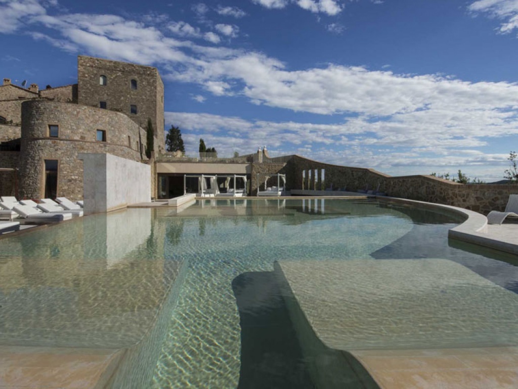 Il Brunello di Montalcino, prodotto nei 5 ettari di vigneti dell’azienda agricola della proprietà, è la punta di diamante della carta dei vini, da degustare anche nel chiostro interno, centro nevralgico del Castello di Velona, proiettato verso il cielo dal rivestimento in cristalli del soffitto. A completare l’offerta enogastronomica, il Pool Bar, nell’area piscina e wellness, per godere, ad ogni ora del giorno, di una bibita rifrescante, un drink o uno spuntino light.