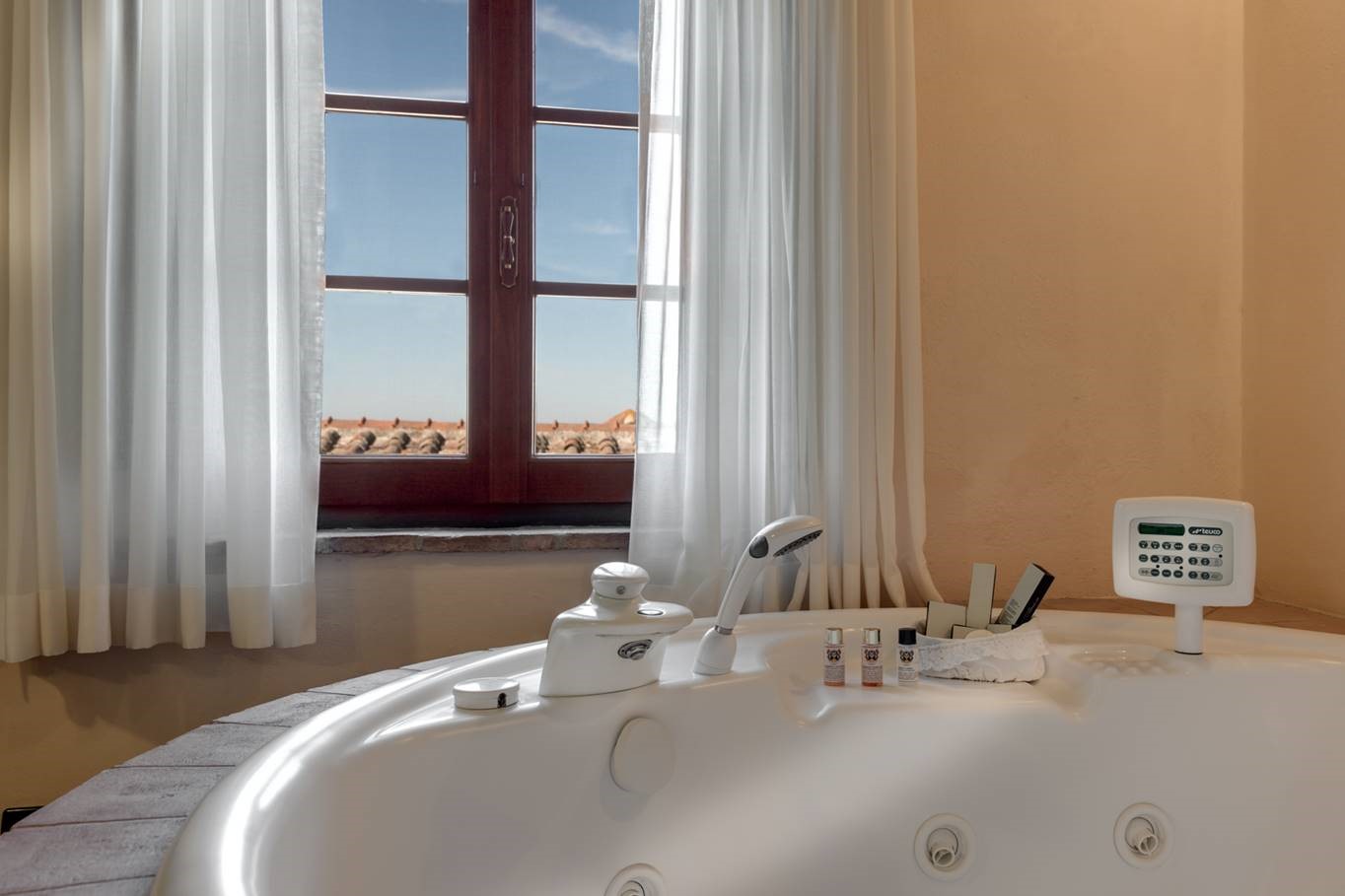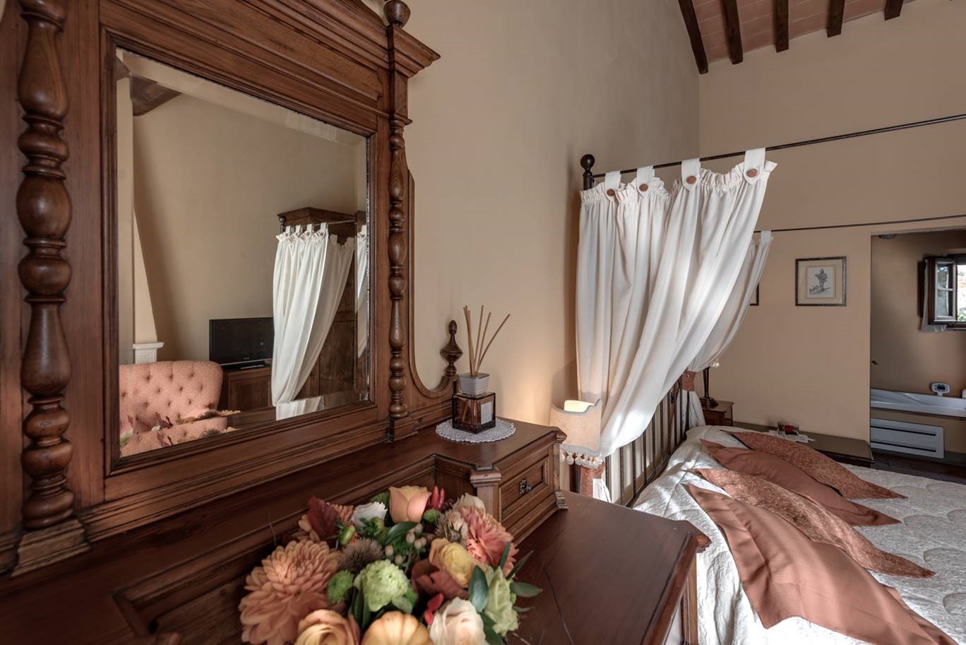 Edificio principale da 6 posti letto al piano terra grande salone libreria con caminetto e grande cucina con lavastoviglie, forno e camino, al primo piano tre camere matrimoniali con caminetto ciascuna con bagno privato con vasca idromassaggio e cabine sauna.