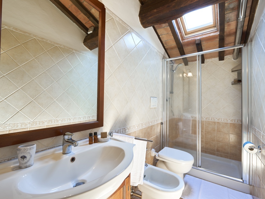 Camera matrimoniale, bagno con doccia.