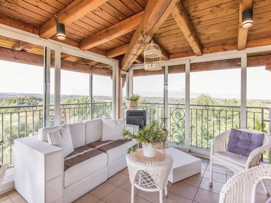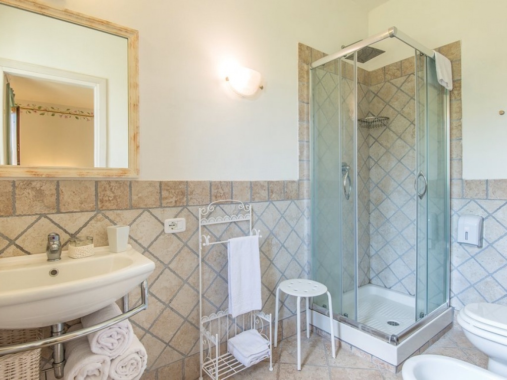 Gli oliveti, vigne e noccioli che circondano questa villa, garantiscono privacy e tranquillità assolute. La villa, a 2 km dalla località medievale di Vitorchiano, è posto in posizione dominante, sopra una verde vallata e offre un ampio giardino con grande piscina e svariati luoghi di ricreazione e relax. La terrazza sul tetto, che può essere chiusa con grandi vetrate ed è equipaggiata con barbecue, è attrezzata per mangiare all’aperto ammirando la meravigliosa campagna della Tuscia Romana. La posizione geografica è particolarmente propizia per visitare comodamente sia l’Umbria che il Lazio. Distanze: Viterbo 7 km, Tuscania 25 km, Orvieto 40 km, Roma 80 km. Nel raggio di 25 km ci sono i laghi di Vico, Bracciano e Bolsena.La villa può ospitare fino a 24+2 persone, in 10 camere da letto e 11 bagni con doccia + 1 bagno per disabili senza doccia. La villa è dotata di una cucina completamente attrezzata (forno elettrico e fornelli a gas, frigorifero, cappa aspirante, macchina da caffè, microonde, lavatrice e lavastoviglie). La villa si articola su 4 livelli terrazzati, i primi 3 livelli della villa hanno la possibilità di accedere al giardino esterno. Al primo livello è presente una camera matrimoniale con divano letto doppio, un’altra camera matrimoniale e infine una camera singola (con letto ad una piazza e mezzo). Al secondo livello sono presenti 3 camere triple (matrimoniale + singolo), una camera matrimoniale e un bilocale suddiviso in una camera matrimoniale ( con bagno privato ) e una stanza con due letti singoli ( senza bagno privato). Il terzo livello è occupato dalla sala da pranzo e cucina oltreché da una camera matrimoniale; tramite una scala a chiocciola si arriva all’ultima camera matrimoniale e alla terrazza panoramica (quarto livello). Servizi Piscina esterna (9x4 metri, 60 Metri quadrati), BBQ esterno, doccia esterna, ampio giardino, mobili da giardino, parcheggio auto (8 posti), giochi per bambini (scivolo), barbecue, terrazze (una coperta e l’altra aperta), TV satellitare, Impianto stereo e lettore CD, 1 lettore DVD, Internet (senza fili), Giocattoli da interno, Fasciatoio, Seggioloni, Culle, Cucine completamente attrezzate (forno elettrico e fornelli a gas, frigorifero, cappa aspirante, macchina da caffè, microonde, lavatrice e lavastoviglie), riscaldamento autonomo, aria condizionata (nelle camere triple, e nel monolocale)NOTA: L'ultimo Km di strada per arrivare all'alloggio è sterrato e non adatto a macchine sportive o bus.