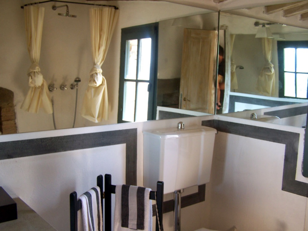 Al piano terra soggiorno con caminetto ed accesso al giardino e alla terrazza pavimentata in pietra, studio/stanza tv con divano letto che può diventare una confortevole camera singola con bagno interno con doccia, ampia sala da pranzo con caminetto ed accesso alla terrazza coperta attrezzata per mangiare all’aperto, cucina con due forni, lavastoviglie ed un ulteriore spazio con frigorifero con macchina per il ghiaccio, lavatrice, asciugatrice e ferro da stiro. Il primo piano è raggiungibile attraverso una scala dalla cucina oppure dal parcheggio. Qui troviamo una camera matrimoniale con bagno interno con vasca e doccia, una camera doppia o matrimoniale (posizionata sulla torre) con bagno interno con vasca con parete doccia e spogliatoio. Una scala esterna in pietra porta al piano superiore della torre con piccola terrazza, una camera matrimoniale con bagno interno con doccia.