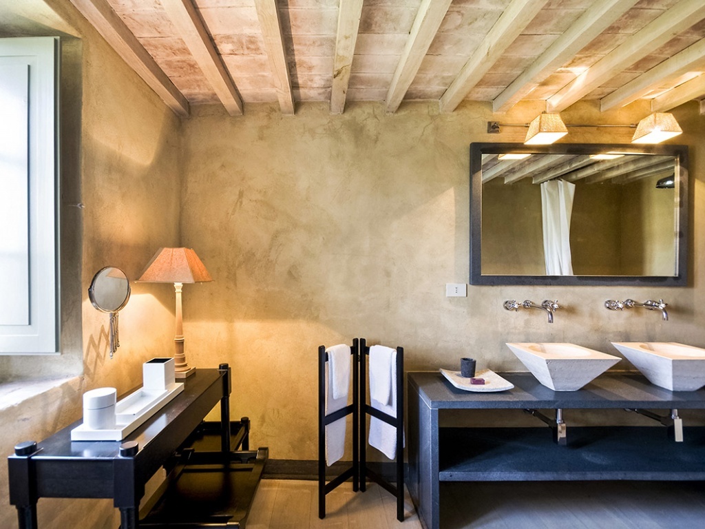 Al piano terra soggiorno con caminetto, sala da pranzo, cucina con due forni, forno a microonde, frigorifero con distributore di ghiaccio e lavastoviglie, una camera matrimoniale con bagno interno con cabina doccia, veranda collegata al resto della casa, guardaroba ospiti con wc e lavandino, una camera doppia con ingresso indipendente dal grande patio con bagno privato con vasca con parete doccia, scale che consentono l’accesso al primo piano. Al primo piano una camera matrimoniale con studio/salotto e caminetto e bagno privato con vasca in pietra di grandi dimensioni con parete doccia, una camera da cinque posti letto con divano letto a livello del pavimento e due letti singoli ed uno matrimoniale in un loft raggiungibili attraverso una scale interna con tv sat, vhs, dvd, stereo e bagno interno con cabina doccia (la camera è adatta per bambini oppure genitori con bambini), una camera matrimoniale con bagno con vasca e parete doccia, una camera matrimoniale con bagno privato con vasca e parete doccia, una camera doppia con bagno privato con vasca e parete doccia, una camera matrimoniale con bagno con vasca con parete doccia.