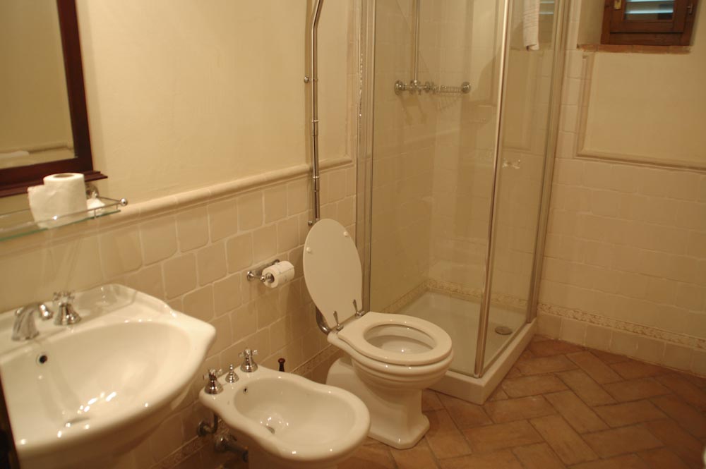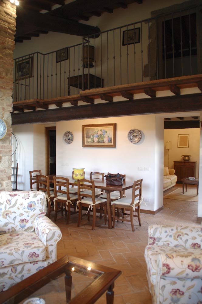 Al piano terra piccola loggia con forno a legna, grande soggiorno con tv sat, caminetto ed accesso sull’esterno, piccolo salotto con caminetto e accesso sull’esterno, sala da pranzo con tavolo per 16/18 posti, cucina con forno, freezer ,lavastoviglie, tavolo da 4 posti e accesso sull’esterno, un bagno con doccia, due camere con bagno in comune con doccia, entrambe con uno scalino all’ingresso, di cui una matrimoniale ed una doppia. Al primo piano tre camere matrimoniali con bagno interno con doccia, due camere doppie con bagno interno con doccia, una camera singola con bagno interno con doccia e pouff da 1 posto letto.