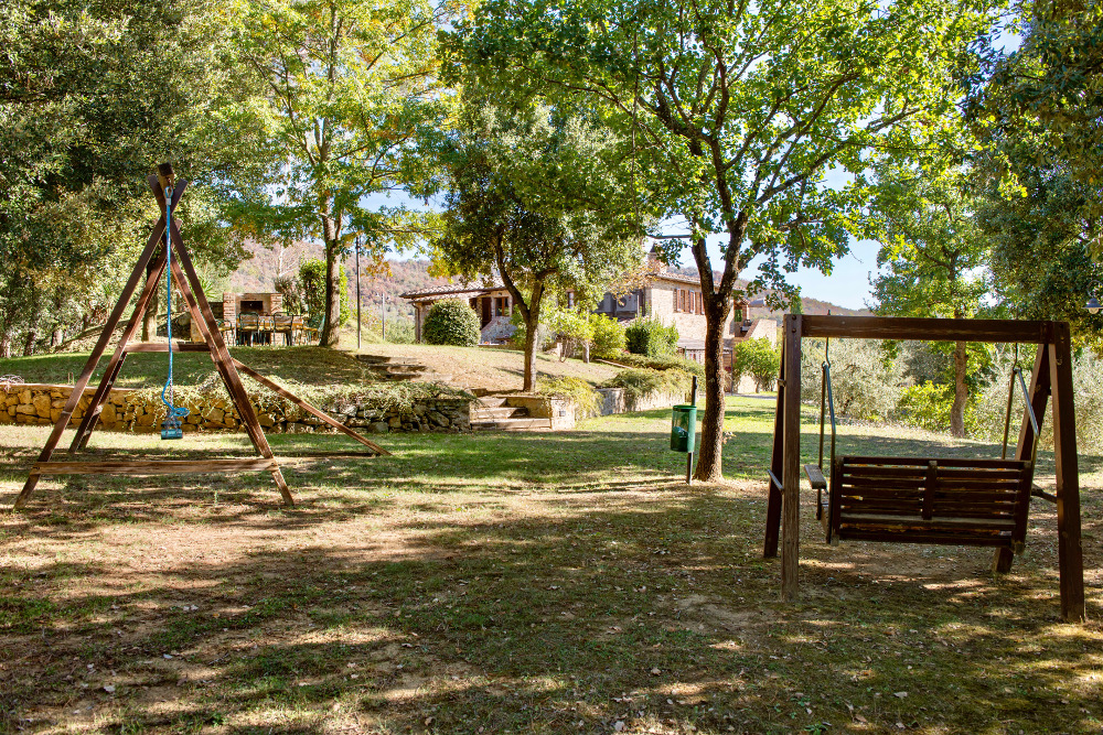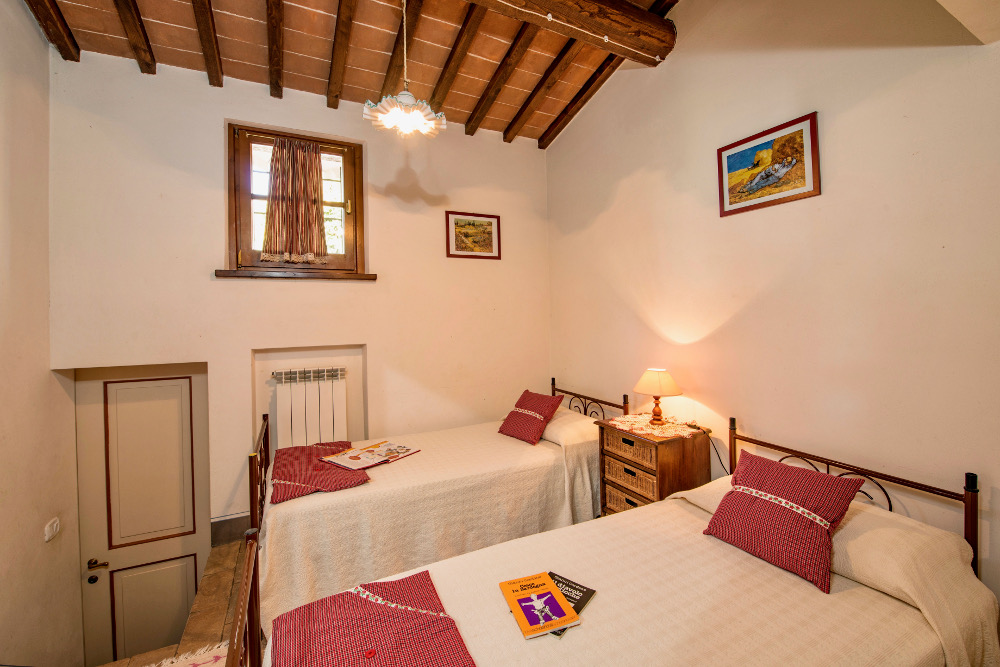 La Quercia da 4+1 posti letto al piano terra soggiorno con angolo cottura, caminetto e due divani letto singoli, una camera matrimoniale, una camera doppia, due bagni con doccia. Veranda con tavolo e sedie.