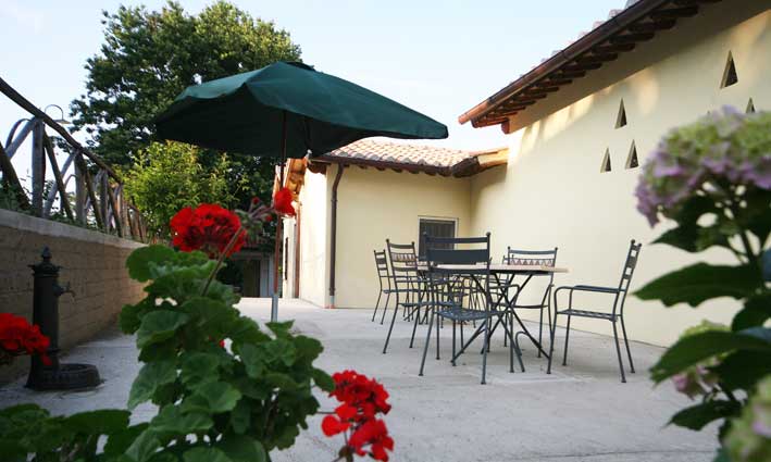 Dependence Casale Biagio da 2+3 posti letto, indipendente, al piano terra patio per mangiare all’aperto, soggiorno con angolo cottura, una camera matrimoniale, un bagno privato con doccia, un divano letto matrimoniale e un letto singolo.