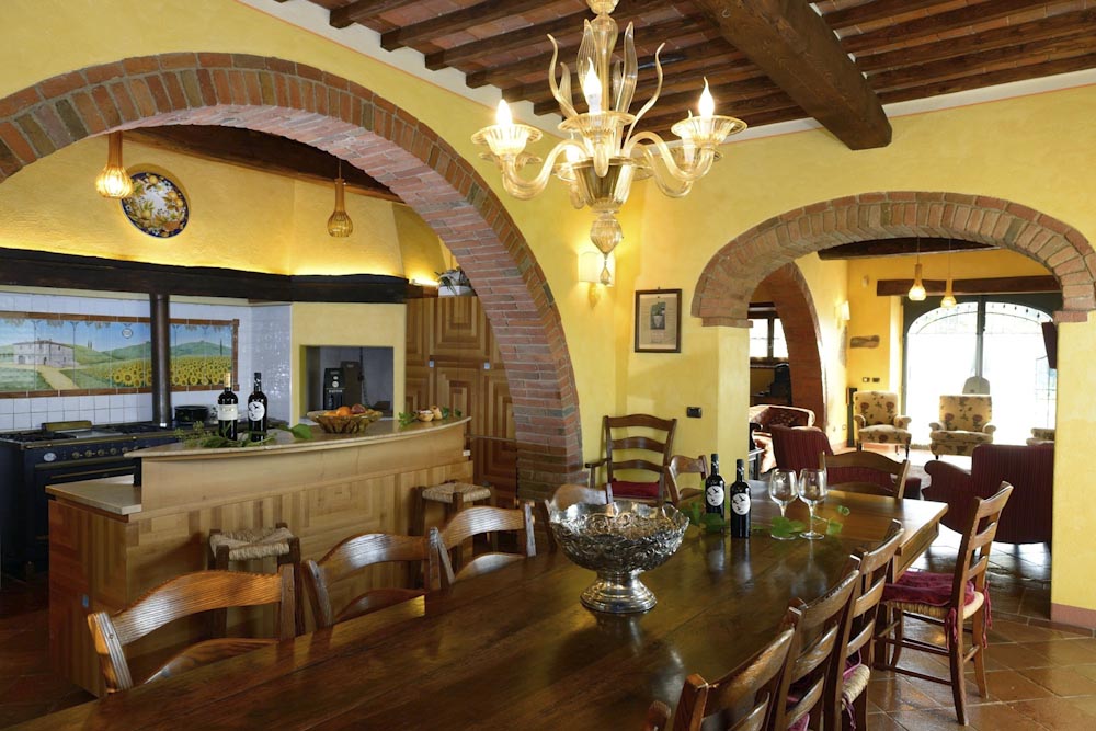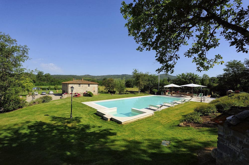Bellissima colonica, ex molino situato nella campagna della Val d’Ambra, tra il Chianti e Arezzo. Il restauro ha rispettato ogni dettaglio architettonico, così come l’uso di materiali tradizionali, legno, cotto e pietra. Intorno, un bel giardino ed una grande piscina circondata da campi di girasoli.