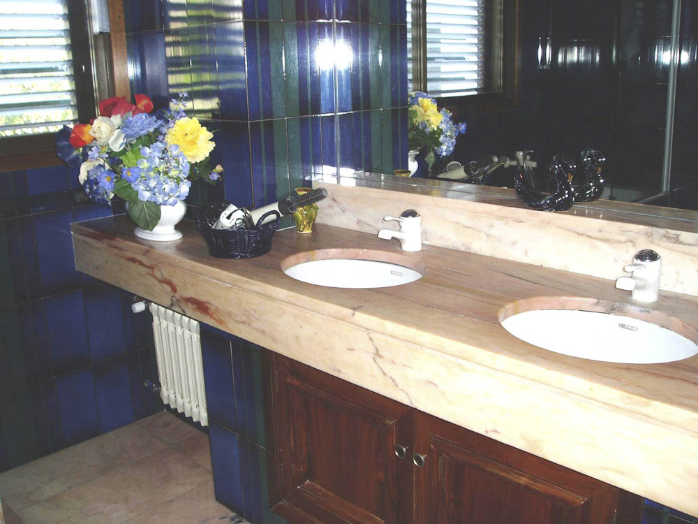 Edificio principale da 12 posti letto al piano terra grande sala da pranzo, salone con tv, video, cd, divano e poltrone; tutti gli spazi hanno accesso alla terrazza. Allo stesso piano c’è anche un servizio ed una grande cucina con forno, lavastoviglie e forno a microonde. Al primo piano cinque camere matrimoniali ciascuna con bagno interno con vasca, una camera doppia.