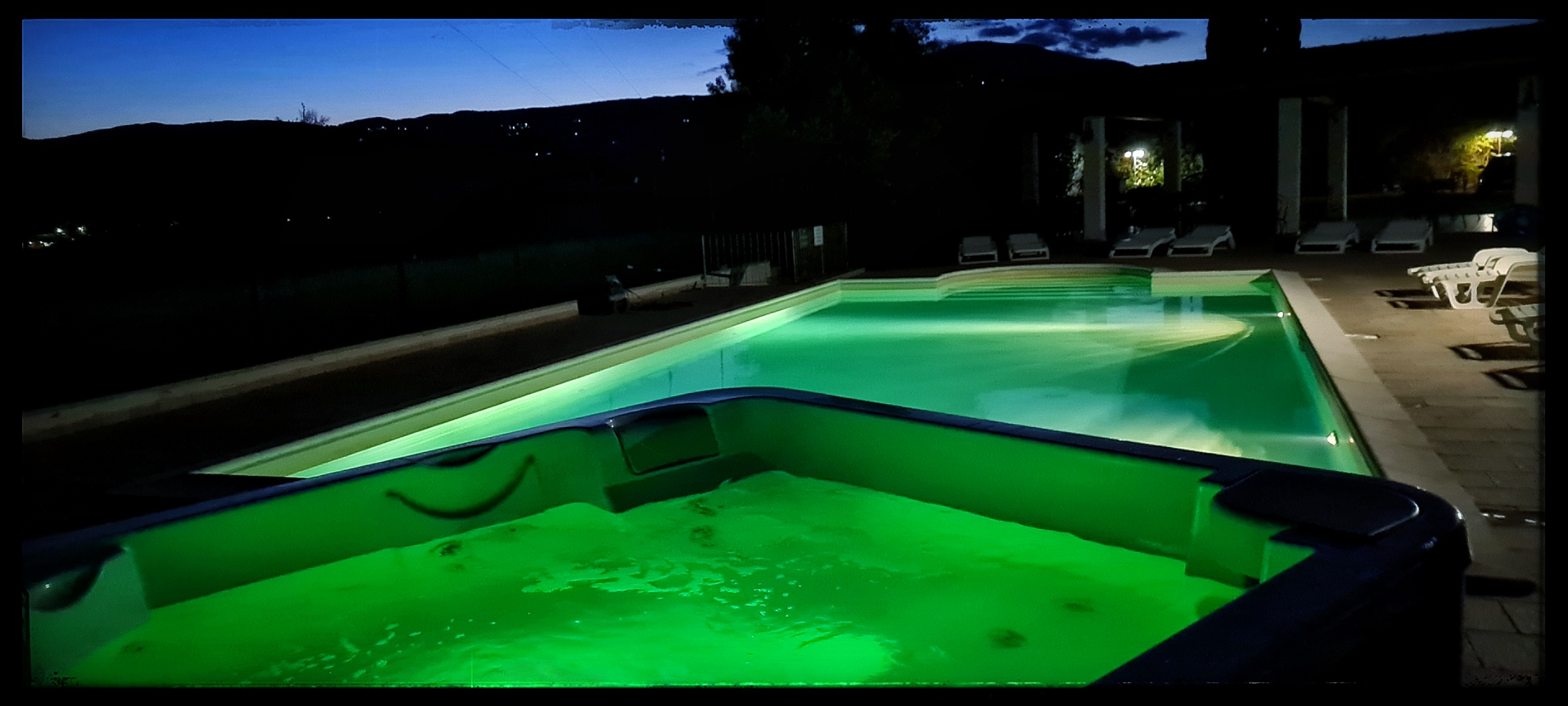 Piscina (mt 6x12, profondità 1,50 m), giardino recintato con cancello automatico, grande gazebo da 100 mq con barbecue e piccolo orto botanico, loggia, 4 mountain bike, vari attrezzi fitness. Tutti gli appartamenti, ad eccezione di Gelsomino, sono dotati di lavatrice. Tutti gli appartamenti sono dotati di connessione wi-fi all'interno e all'esterno della struttura, asciugacapelli, videosorveglianza, lavastoviglie, frigorifero e congelatore, cassetta di sicurezza, TV, forno. La sala e la cucina dell'appartamento Glicine possono essere usati come ambienti comuni.