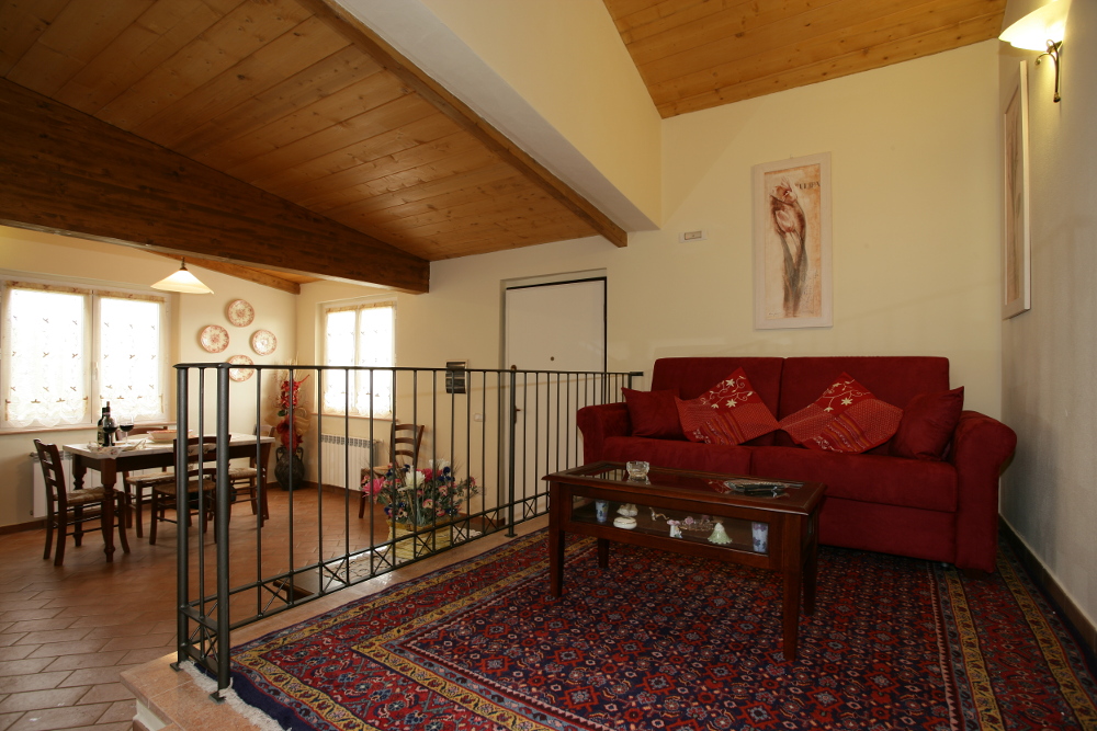 Casina Margherita da 3+2 posti letto grande soggiorno con divano letto, tv e uscita diretta su loggia esterna, dotato di angolo cottura con forno e lavastoviglie. Al piano rialzato una camera matrimoniale, una camera con letto da una piazza e mezza, un bagno con doccia.