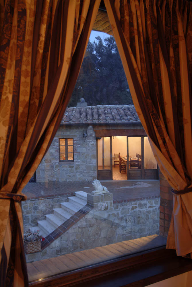 Al primo piano cucina, grande salone con caminetto e splendida vista su giardino e piscina, una camera matrimoniale con bagno interno con vasca e doccia, una camera matrimoniale con bagno interno con doccia. Posta tra il casale e la piscina una dependance costituita da una sala con grande forno per pizze e grigliate.