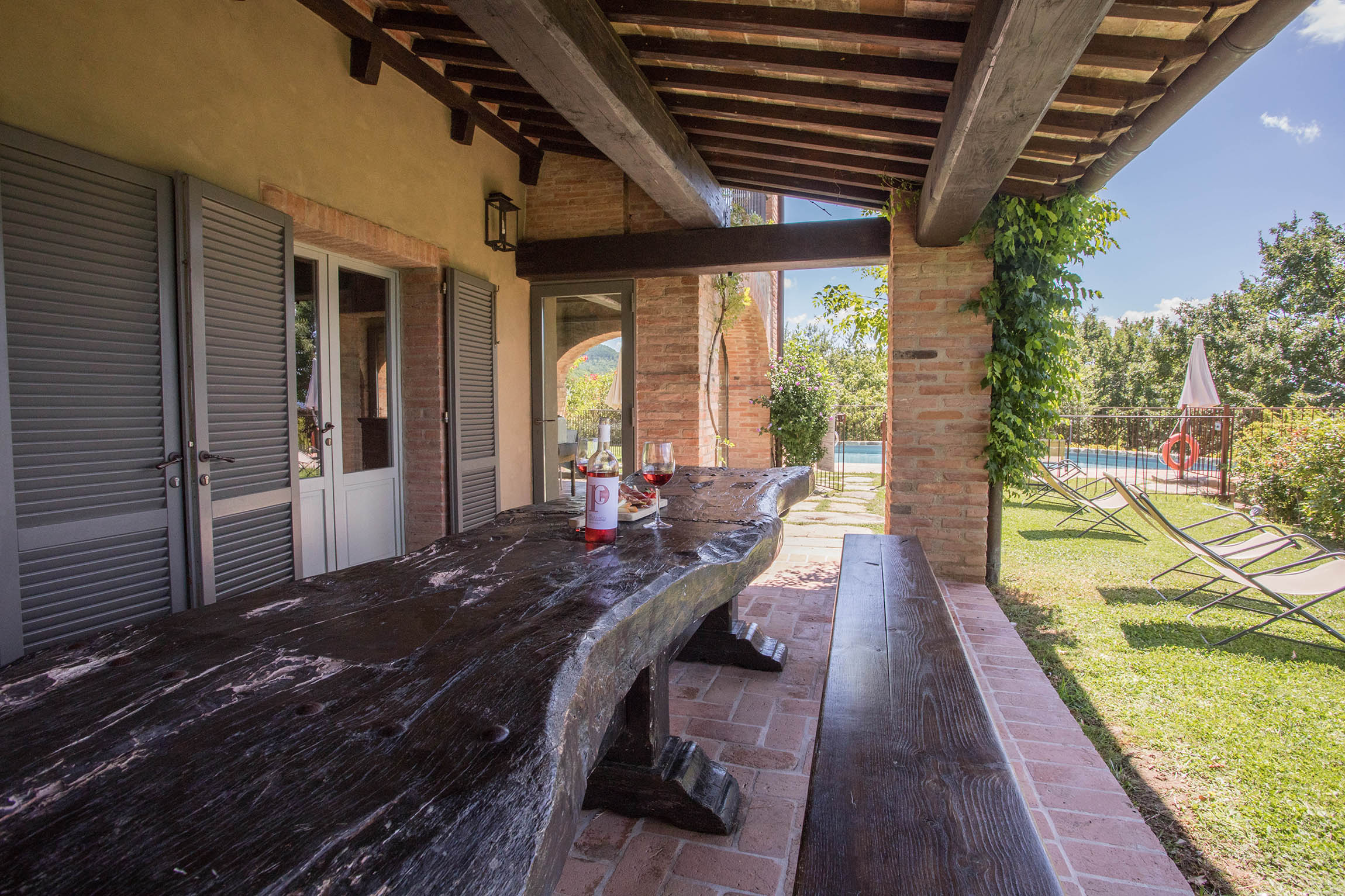 Villa Nocciola è una residenza storica recentemente ristrutturata, immersa nel cuore delle colline toscane, che offre un’atmosfera accogliente e sofisticata. La villa si sviluppa su due piani e può ospitare fino a 10 persone, con 5 camere matrimoniali ognuna con bagno privato. Il piano terra è caratterizzato da una cucina ben attrezzata e una spaziosa sala da pranzo ricavata dalla loggia originale, con grandi vetrate che permettono di godere di una vista spettacolare sulla valle sottostante e su Arezzo. Gli spazi esterni sono altrettanto affascinanti: un giardino privato di 1000 m², perfetto per rilassarsi all’ombra di alberi secolari, e una piscina privata di 45 m² dove potersi rinfrescare durante le calde giornate estive. La villa è pensata per offrire il massimo del comfort, con finiture moderne che si integrano perfettamente con l’architettura storica, creando un ambiente perfetto per famiglie e gruppi che desiderano una fuga esclusiva nella natura toscana.