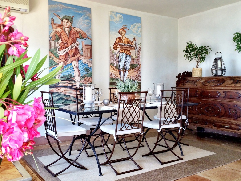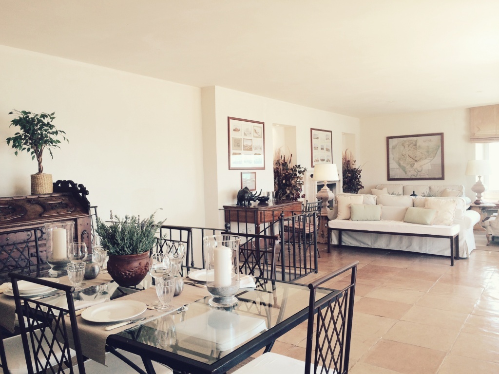 Dalle corte del corridoio si accede al primo piano della villa dove si trova un luminoso salone con splendide viste e aria condizionata. Ad un'estremità si trova una zona salotto con divani, poltrone, televisione satellitare, lettore DVD e camino e, dall'altra, tavolo da pranzo e sedie, nonché un piccolo angolo cottura. Questa bella sala si apre su una terrazza arredata con tavolo e sedie per mangiare all'aperto e lettini, un posto assolutamente spettacolare per rilassarsi o gustare al fresco e godersi la magnifica vista sul mare che si estende fino ad ammirare le isole toscane di Giglio e Montecristo orizzonte.