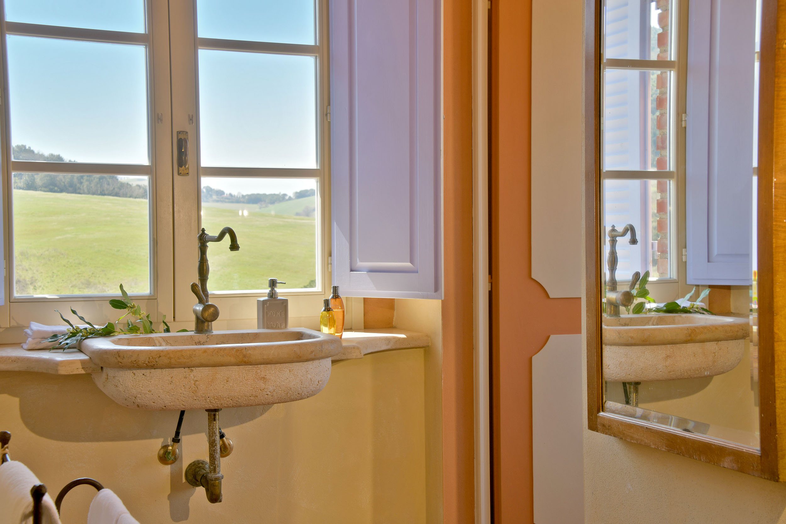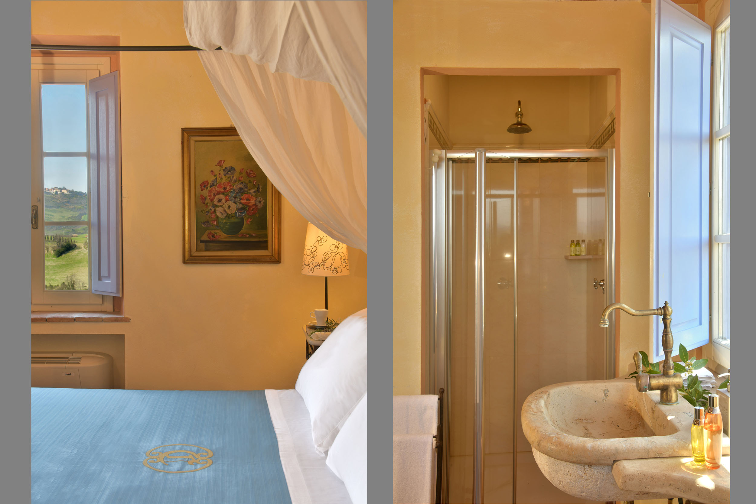 Le sei camere da letto, due al piano terra e le altre 4 al primo piano sono curate nei minimi dettagli, in alcune con letti a baldacchino e lavandini in pietra.