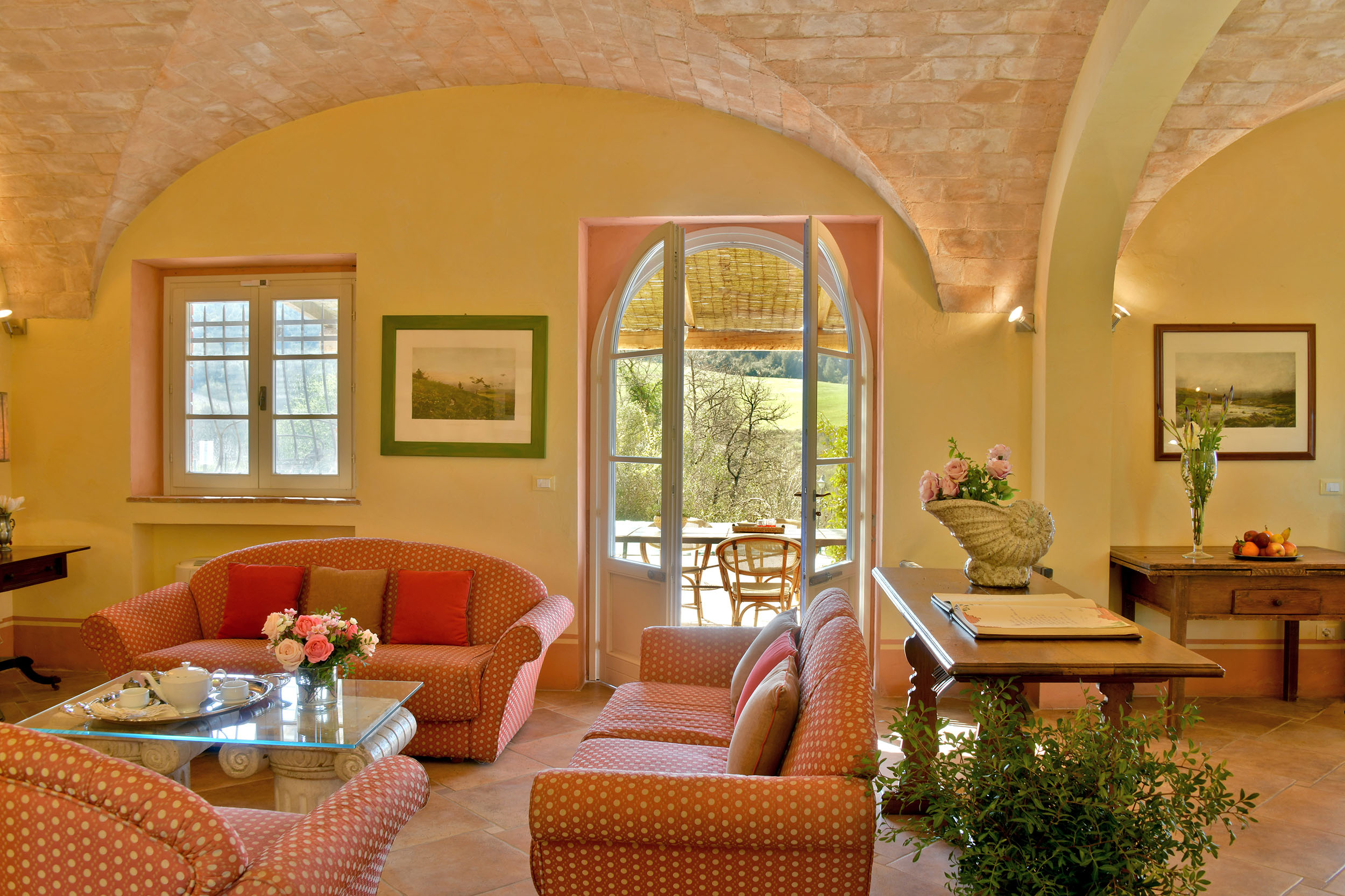 La Villa ha due ampi e luminosi saloni con zona relax con divani e camino in pietra, una area TV LCD, lettore DVD, impianto stereo e collegamento Wi-fi.