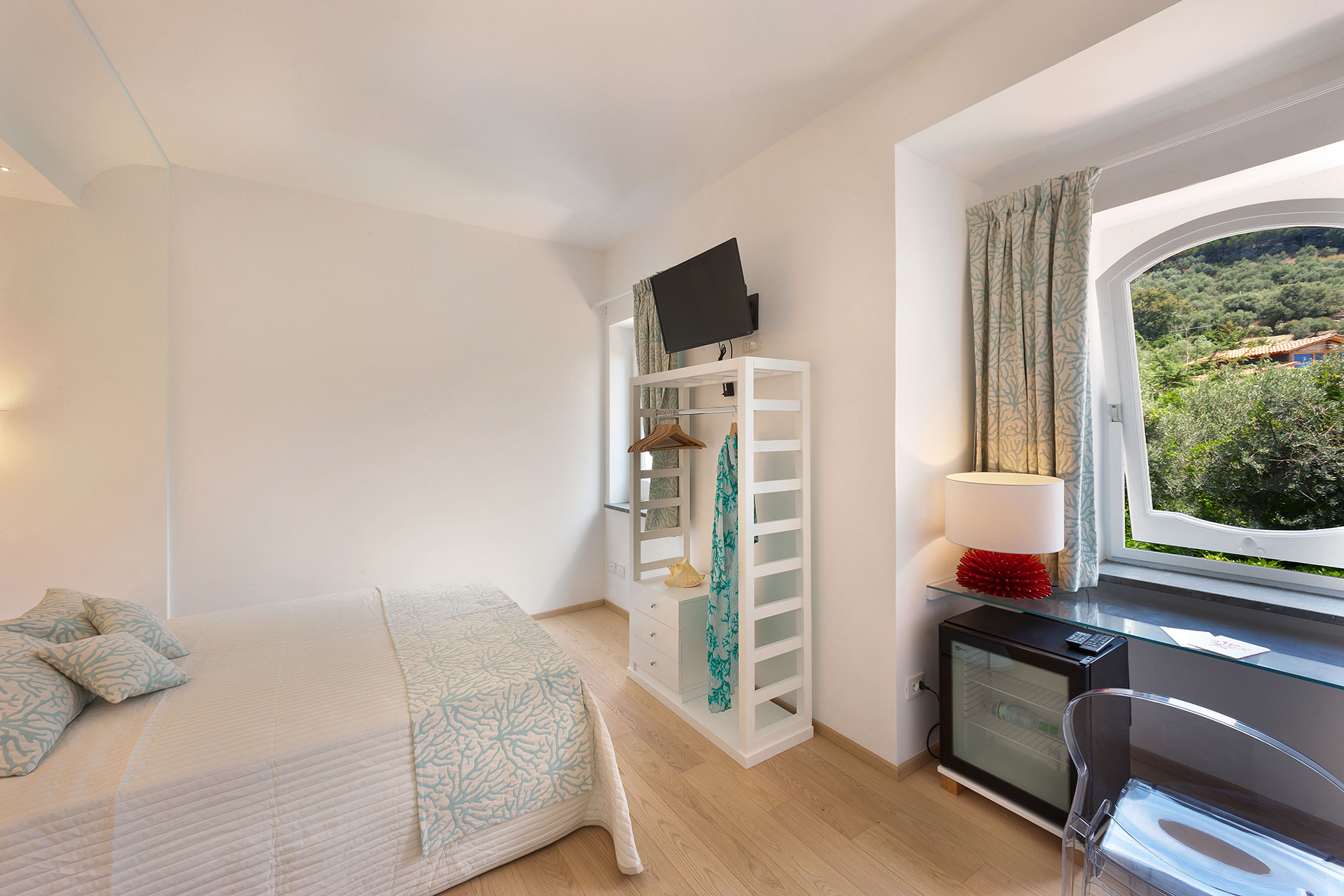La terza camera da letto con bagno en-suite ha un letto matrimoniale, una scrivania, un televisore satellitare, il minibar, aria condizionata e riscaldamento. La stanza ha due finestre con vista parziale del mare. Il bagno è dotato di lavabo, box doccia, wc, bidet e asciugacapelli. Raggiungerete la stanza dal corridoio.