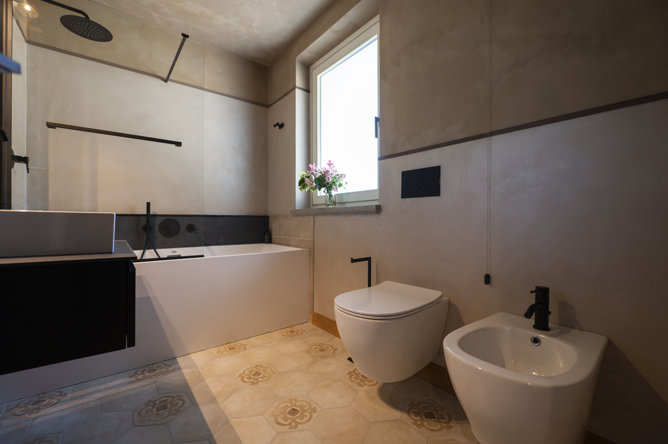 Mentre al primo piano due camere matrimoniali con bagno ensuite di cui uno con vasca.