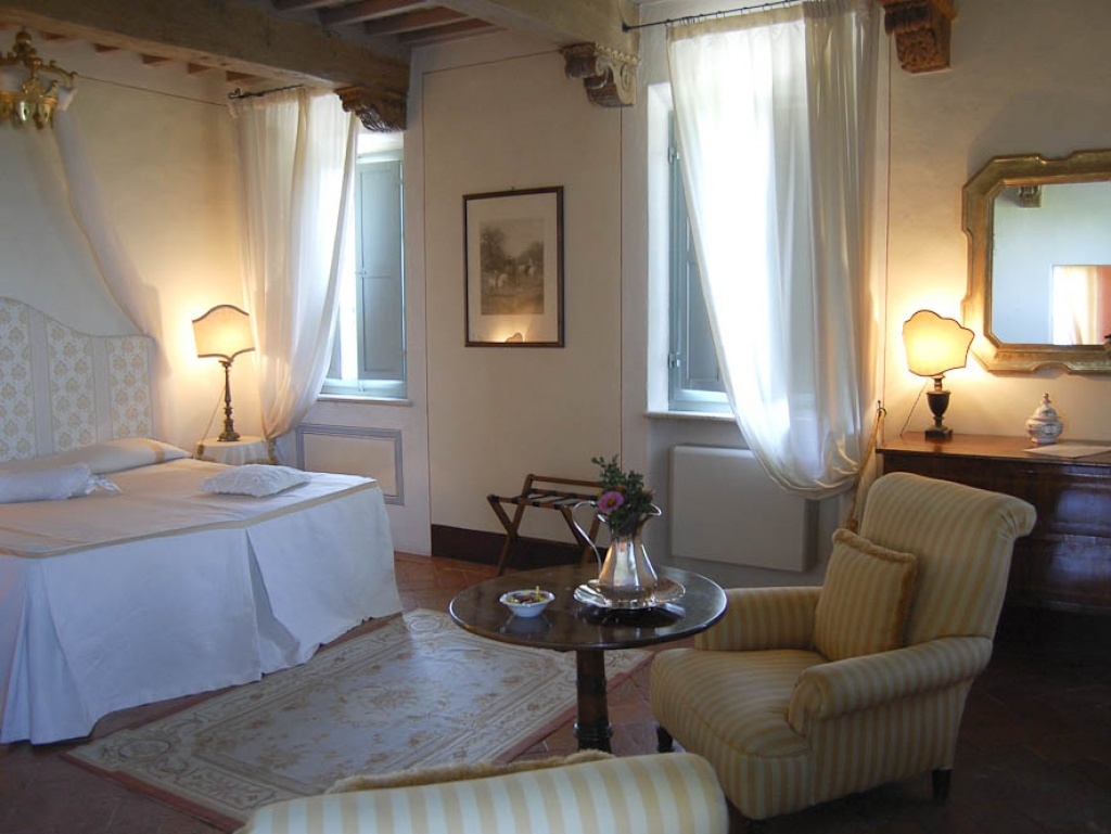 Ospitalità in 5 suite e 3 camere matrimoniali. Le suite sono dotate di soggiorno, camera matrimoniale e bagno con doccia e vasca; le 3 camere matrimoniali hanno ciascuna il bagno privato. All'interno del parco sono presenti 3 appartamenti: Il Noce e il Cipresso da 2 posti letto composti da un soggiorno con camino e angolo cottura, una camera matrimoniale e un bagno con doccia. La Vigna da 4 posti letto composto da un soggiorno con camino e angolo cottura, due camere matrimoniali con bagno privato con doccia.