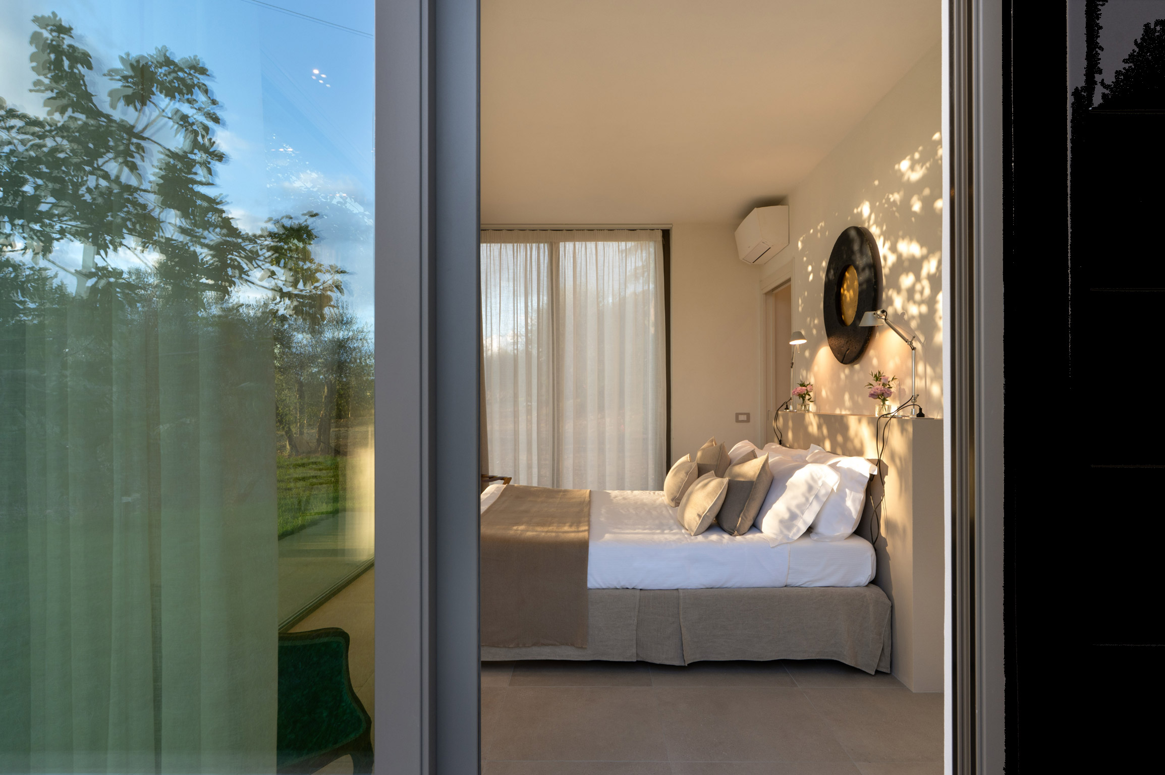 Gli spazi esterni sono uno dei punti di forza della proprietà: piscine recintate, giardino curato, solarium, gazebo, terrazza panoramica e aree attrezzate per relax e convivialità. Tra i servizi disponibili: aria condizionata, Wi-Fi, zanzariere, camino, lavatrice, lavastoviglie, barbecue, parcheggio privato, TV satellitare, DVD, Radio/CD, microonde, cassaforte e possibilità di degustazioni di vino e olio locali.