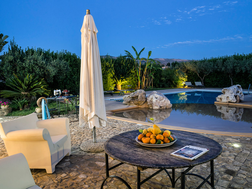 Lussuosa villa con piscina privata situata ai margini di Buseto Palizzolo, piccolo paesino collinare a 20 km da Trapani. Nelle vicinanze si trovano le località, i siti archeologici e le bellezze naturalistiche più affascinanti della Sicilia occidentale: dal borgo medievale di Erice all'imponente tempio di Segesta, dall'isola di Mozia alla riserva naturale dello Zingaro, dalle isole Egadi alle saline di Marsala, all'elegante Trapani. L'esclusiva residenza - posta in posizione tranquilla e soleggiata ma non isolata - gode di una bella vista sulla campagna, da ammirare in assoluto relax dalle sue ampie terrazze o a bordo della splendida piscina.