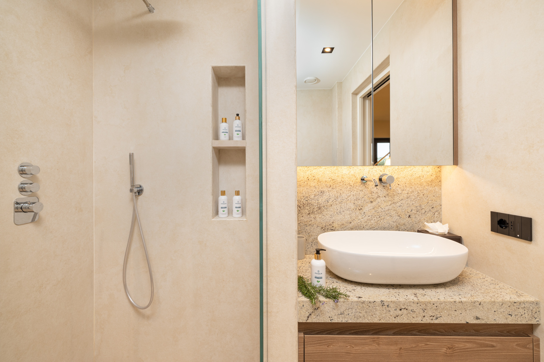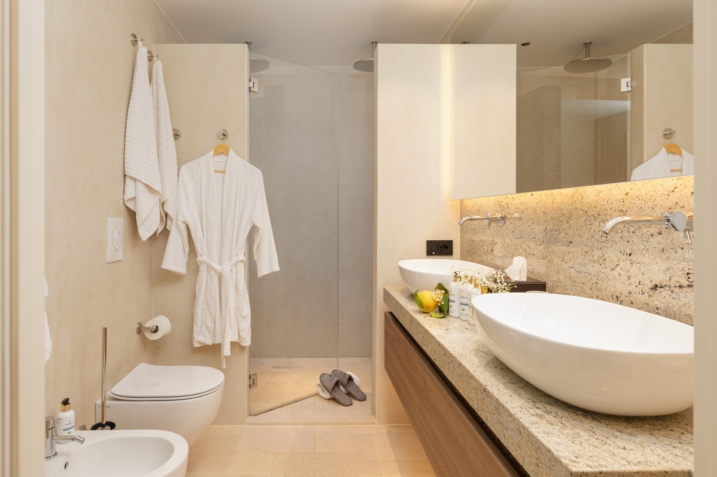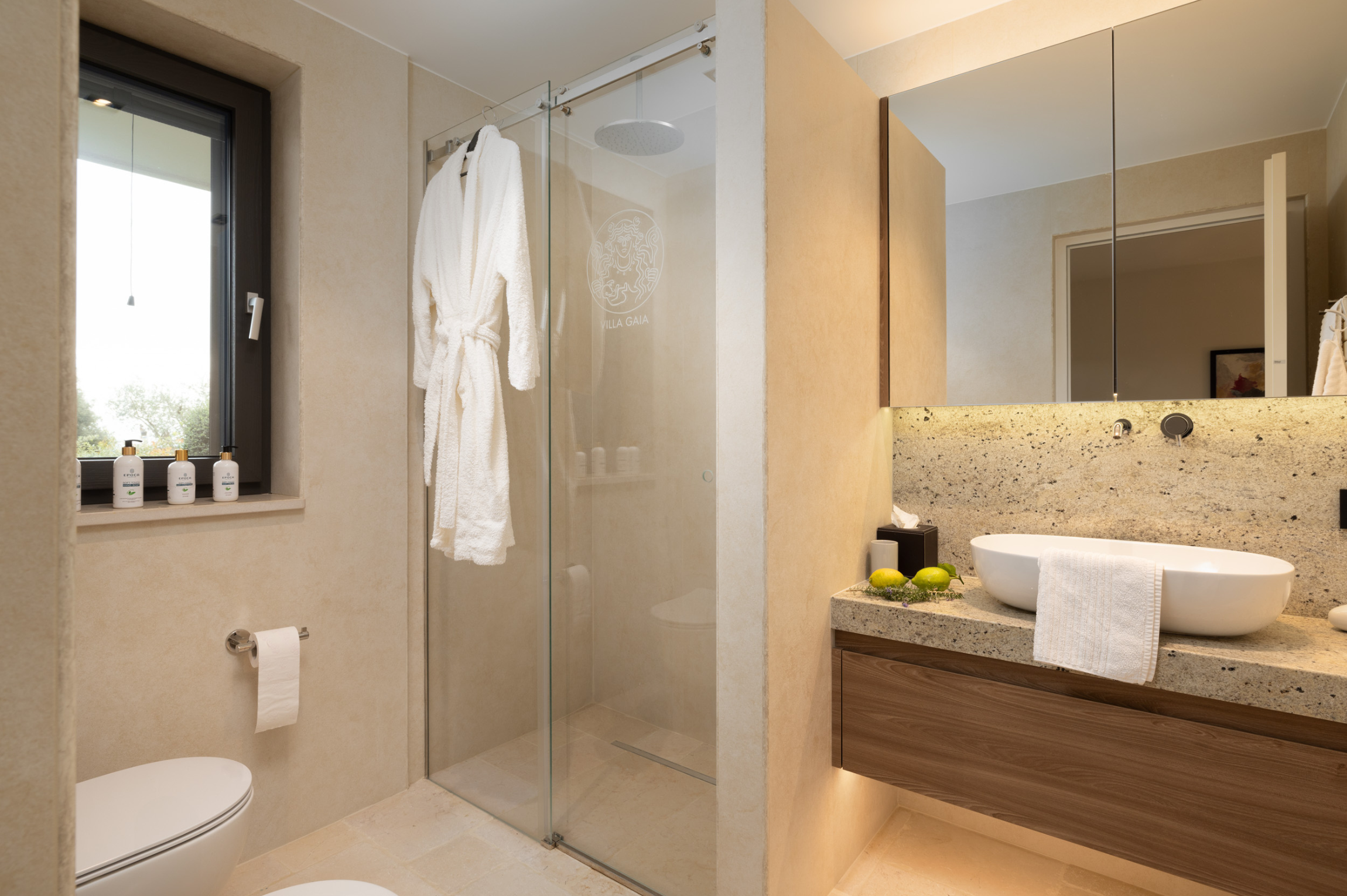 Villa Gaia dispone di quattro eleganti camere da letto con bagno privato, ognuna concepita come un rifugio intimo di comfort e stile. Arredi artigianali, tessuti pregiati e tonalità morbide e naturali evocano la sofisticata armonia del design italiano. Le ampie finestre inondano gli ambienti di luce naturale e incorniciano viste spettacolari sulla valle e sul mare.