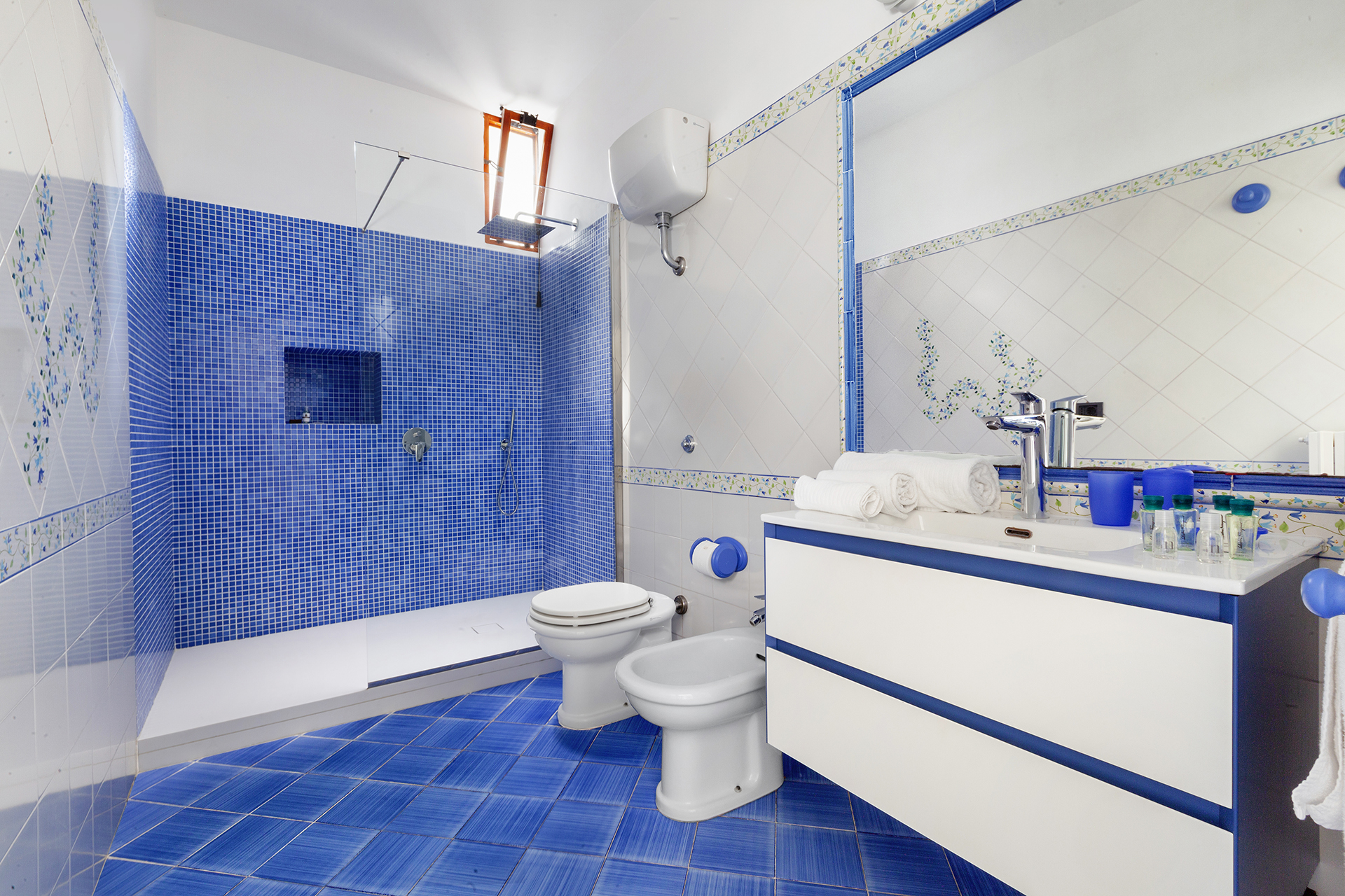IL SECONDO BAGNO è dotato di lavabo, bidet, wc, box doccia e asciugacapelli. Raggiungerete il bagno dal corridoio.