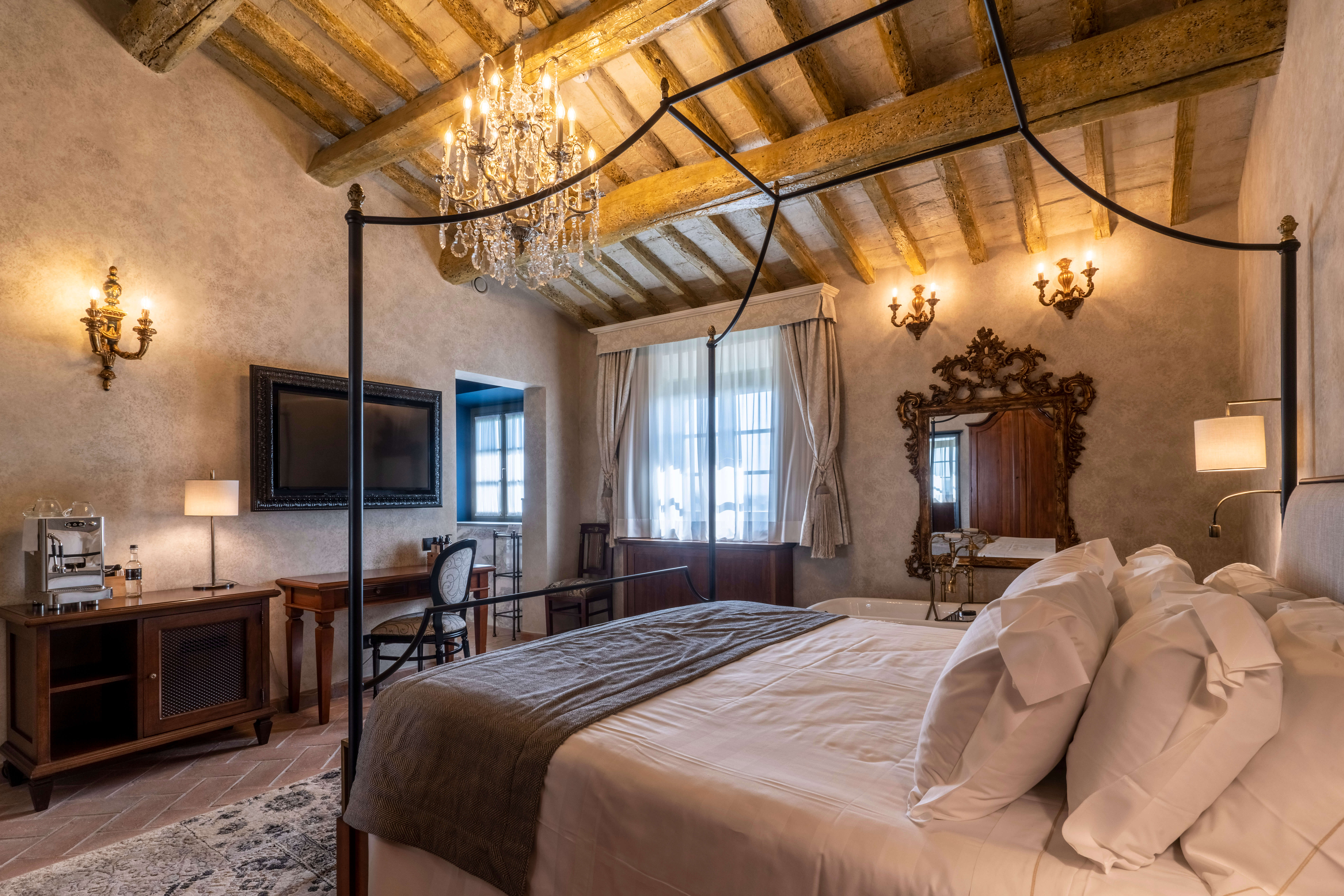 35 suite molto eleganti ed arredate con gusto unico possono accogliere fino a un massimo di 80 persone.