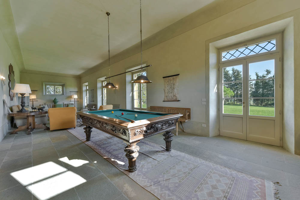 Si apre sulla Loggia la Sala da biliardo con Tavolo da biliardo antico