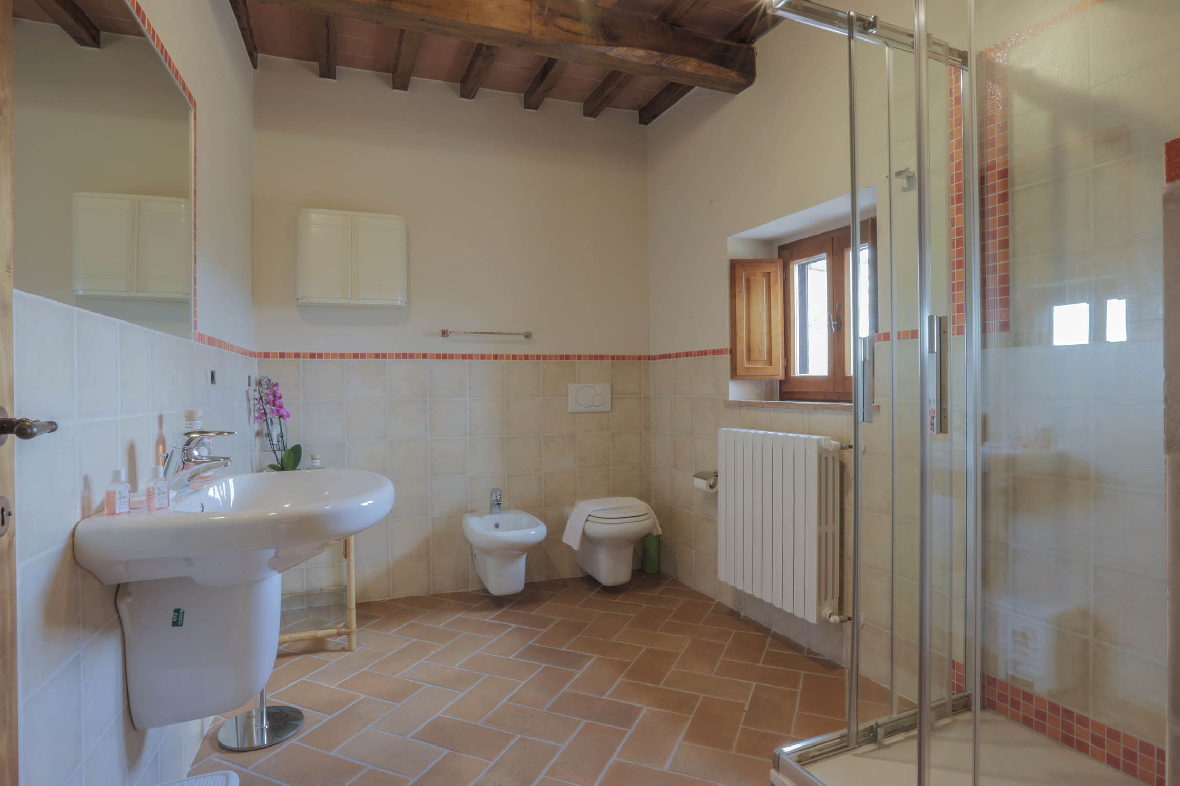 All'interno, Villa Jacopo combina eleganza storica e comfort moderni. La spaziosa area living può ospitare fino a 50 persone, rendendola perfetta per riunioni di famiglia o eventi speciali. La cucina è completamente attrezzata per soddisfare le esigenze culinarie degli ospiti. La villa dispone di 8 camere da letto e 7 bagni; quattro camere matrimoniali con bagno privato e altre quattro organizzate in due unità familiari con un bagno ciascuna. Due delle camere possono essere dotate di divani letto singoli, aumentando la capacità totale fino a 18 ospiti. Ogni camera è arredata con gusto, offrendo un rifugio accogliente dopo una giornata trascorsa a esplorare la regione.