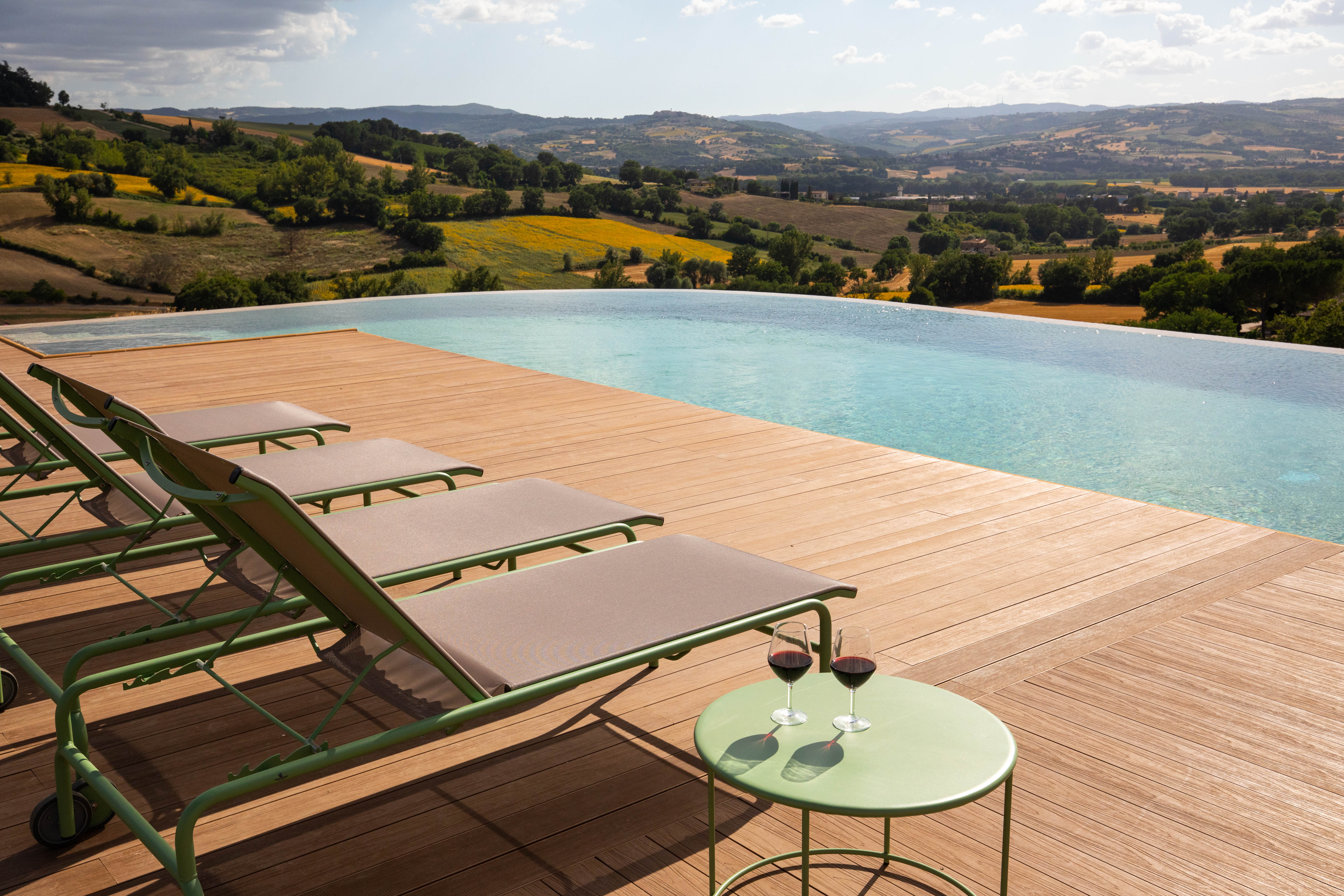 Si trova immersa in un bellissimo paesaggio collinare a metà strada tra Perugia e Todi e garantisce ai propri ospiti la privacy più totale, all'interno di un'area privata recintata di 3000mq.