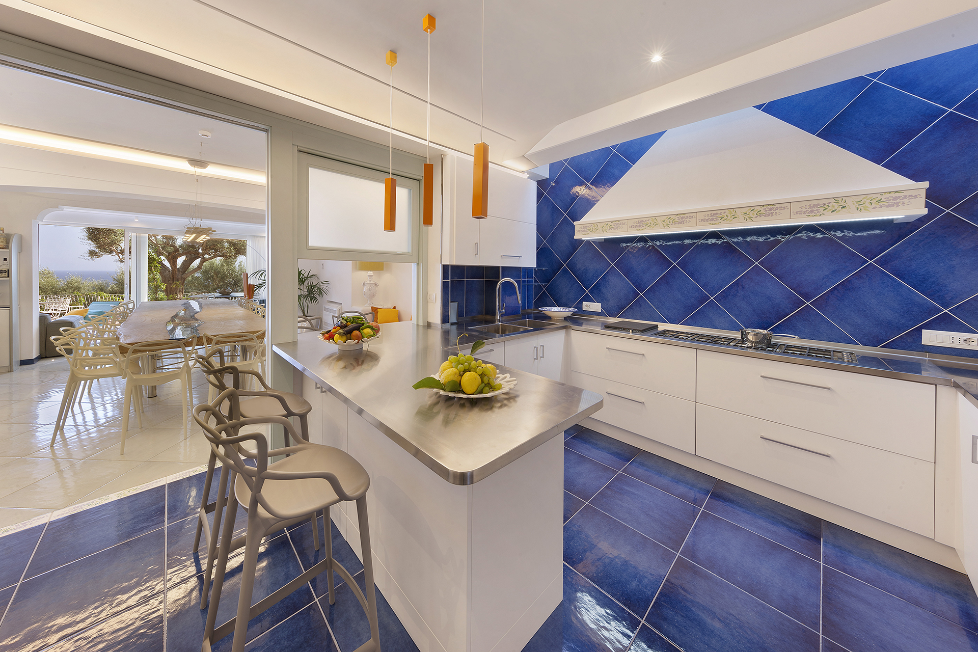 La Villa si trova a Nerano, nella Penisola Sorrentina, lato Costiera Amalfitana. Questo è un luogo magico, da sogno, fatto di strade panoramiche, di scogliere rocciose e verdeggianti a strapiombo sul mare, di colline coltivate a limoni e di selvaggia macchia mediterranea, di paesi arroccati ricchi di storia, cultura, colori.