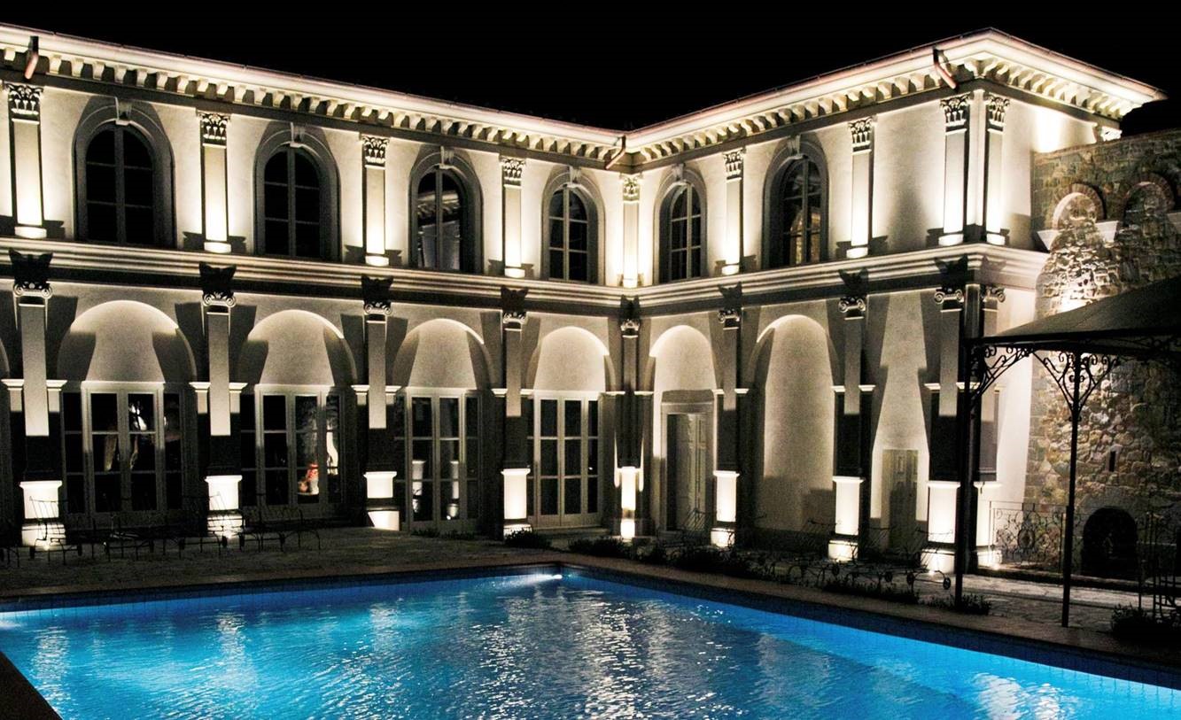 La villa è circondata da un ampio parco, ricco di fiori, ulivi e pini, al centro del quale è situata la splendida piscina ed il suggestivo ristorante estivo, da cui si può godere tutto lo splendore e la quiete delle nostre vallate.