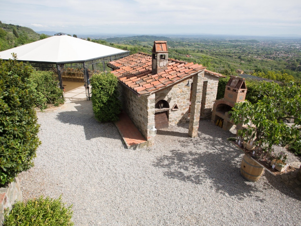 Casa Melograno (143 mq) è composta da ampia cucina completa di forno e lavastoviglie, soggiorno con caminetto, 4 camere e 3 bagni (rifiniti con marmo di Carrara), gazebo per consumare i pasti con vista sulla piana e sulle colline lucchesi. La Casa è dotata di TV satellitare e accesso a internet (connessione wireless).