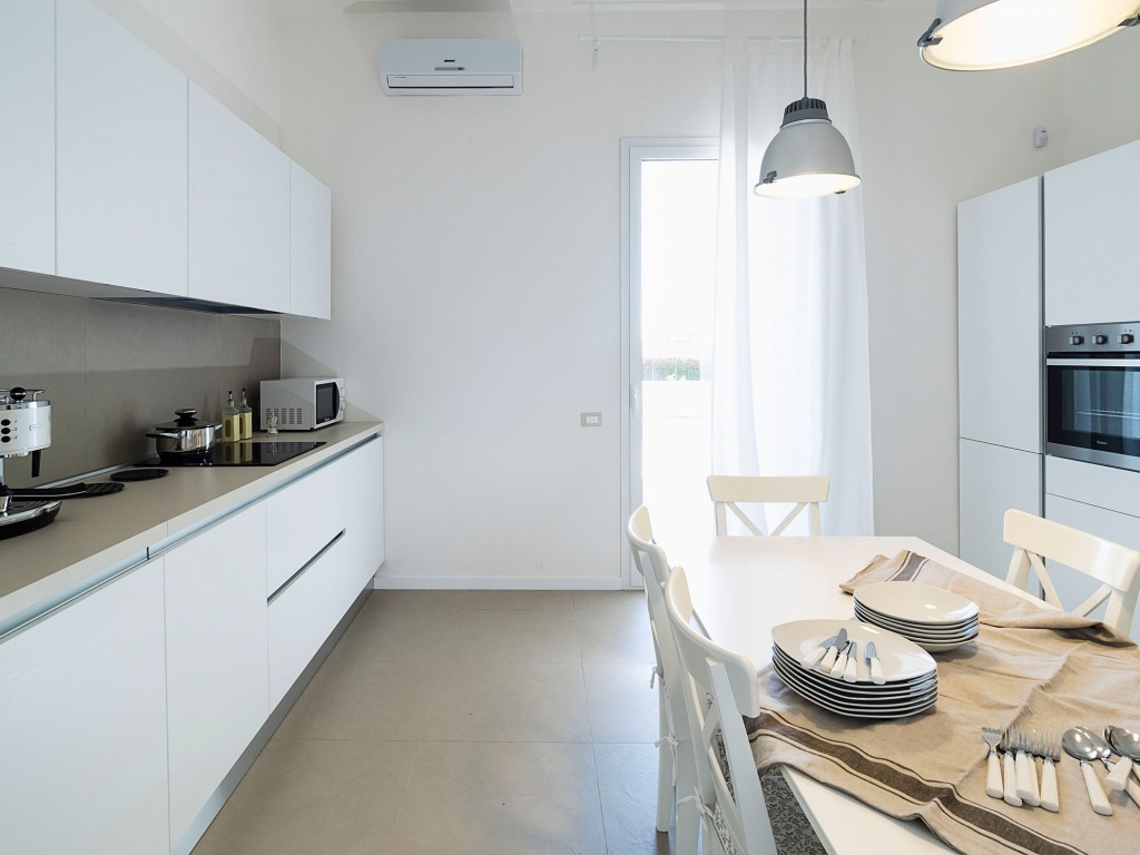 La villa è caratterizzata da freschi e ben suddivisi ambienti interni arredati con gusto e funzionalità, che comprendono un ampio soggiorno con due divani letto, una cucina, due camere matrimoniali, di cui una con bagno privato con doccia, ed un ulteriore bagno con doccia. All´esterno la villa è circondata da un curato giardino che ospita sul retro la bella piscina privata e il solarium.