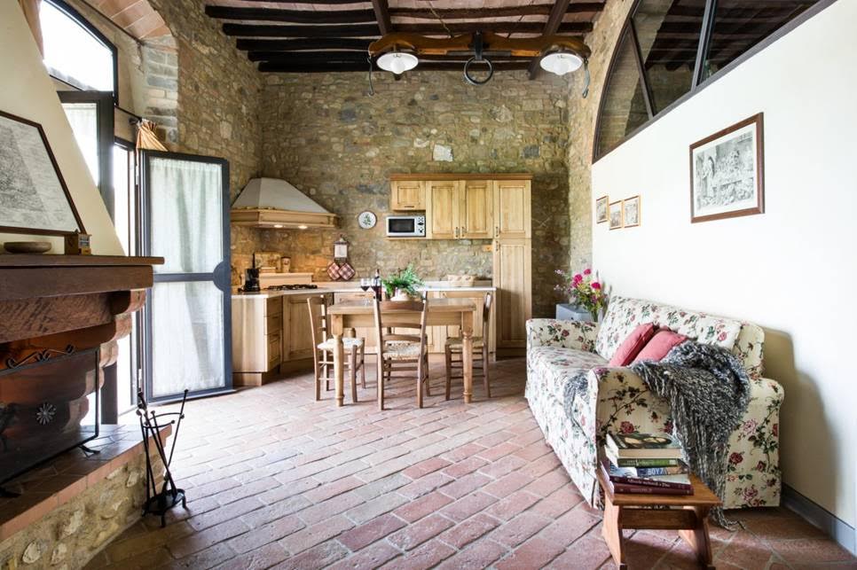 Ap.to Poggio ai Falchi da 4 posti letto al primo piano soggiorno con caminetto, tv con collegamento satellitare e programmi Sky e angolo cottura con microonde, frigo piccolo, lavastoviglie, caffettiera all’americana, due camere matrimoniali ciascuna con bagno interno con doccia. Nella camera più grande è possibile l'aggiunta di una poltrona letto.