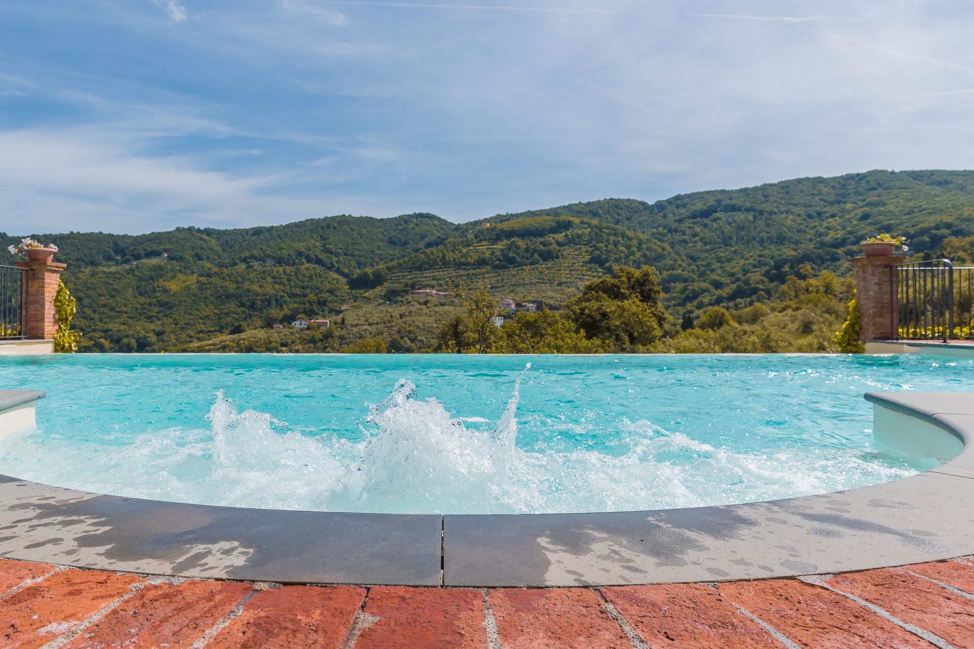 Piscina a sfioro (mt 6x12, profondità 1,35 mt) dotata di idromassaggio, nuoto controcorrente, spogliatoio, bagno con doccia e illuminazione, giardino recintato, gazebo in prossimità della piscina, parco giochi per bambini, aria condizionata, allarme, parcheggio, connessione internet wi-fi (all'interno ed all'esterno), smart tv da 55 e 65 pollici, 4 mountain bike, barbecue (con carbone), zanzariere, cassetta di sicurezza, hi-fi, cucina attrezzata (forno a microonde, tostapane, frullatore, spremiagrumi, sterilizzatore per biberon, macchina per caffè espresso e per caffè americano, depuratore acqua), asciugacapelli, prese USB plug-in in ogni camera, cassa bluetooth, 3 lettini baby e 3 seggioloni, dispenser di shampoo in ogni bagno e dispenser crema corpo, teli da piscina. Possibilità di acquistare prodotti aziendali.