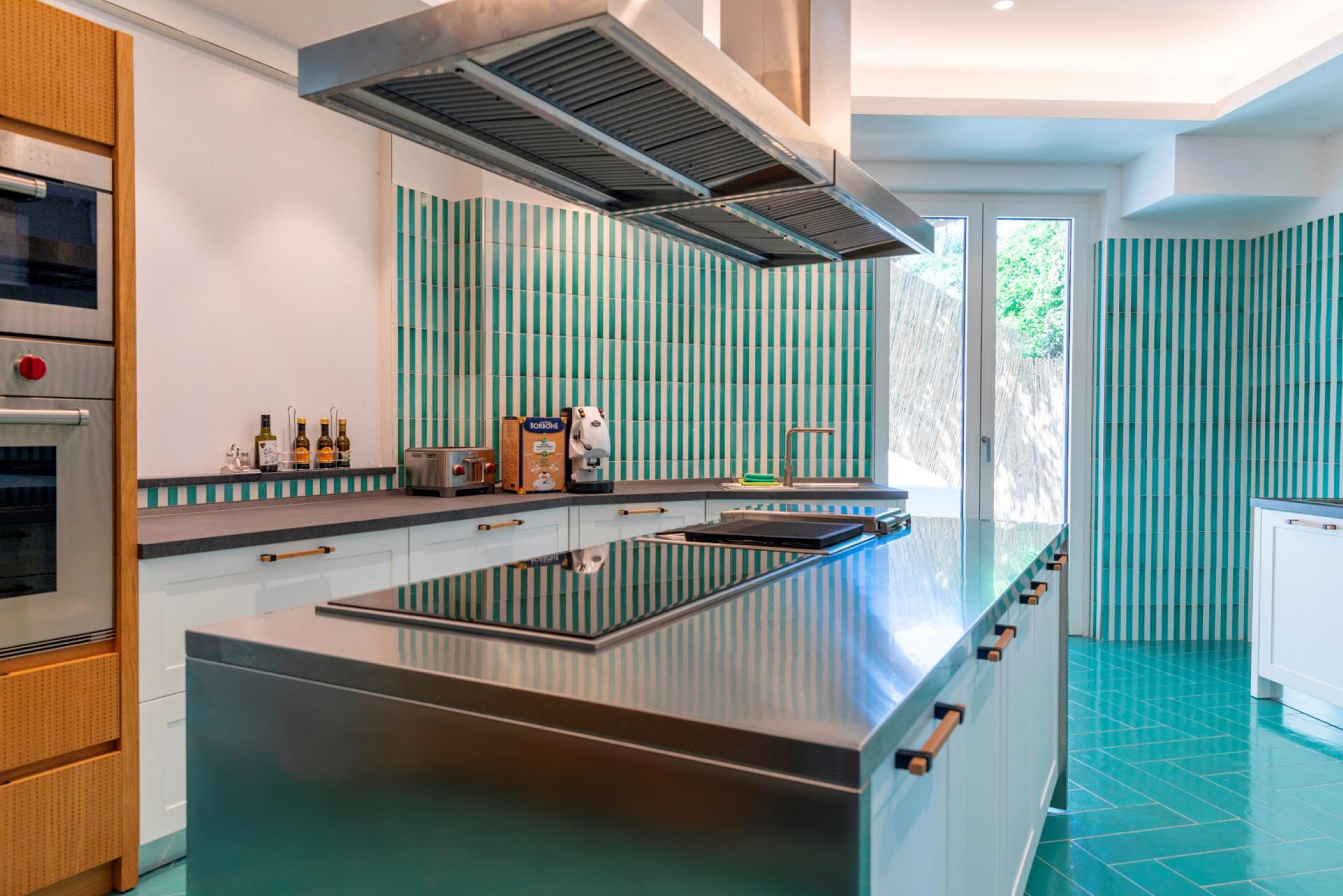 La splendida cucina moderna professionale è dotata di tutto il necessario.