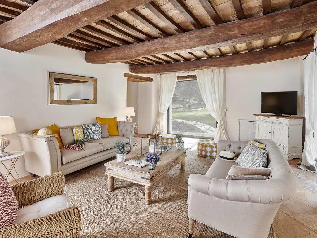 La villa principale si articola su due piani. Al piano terra si trova il soggiorno con camino, il soggiorno-sala da pranzo-cucina open space, un bagno e la lavanderia.