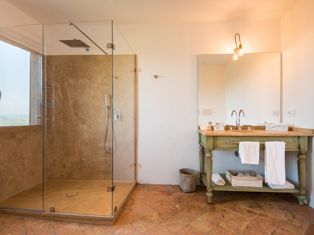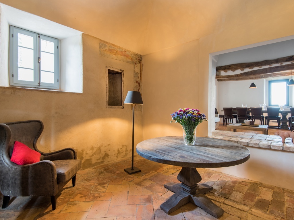 Sovrani regnano gli spazi in questa villa, dagli ampi giardini alle confortevoli 6 camere, tutte dotate di bagno in marmo prezioso. Pavimenti in terracotta, affreschi risalenti al XIII secolo, scale in marmo travertino tutto concorre a rendere questa villa elegante senza ostentazione, un perfetto mix di comfort moderno e materiali antichi.