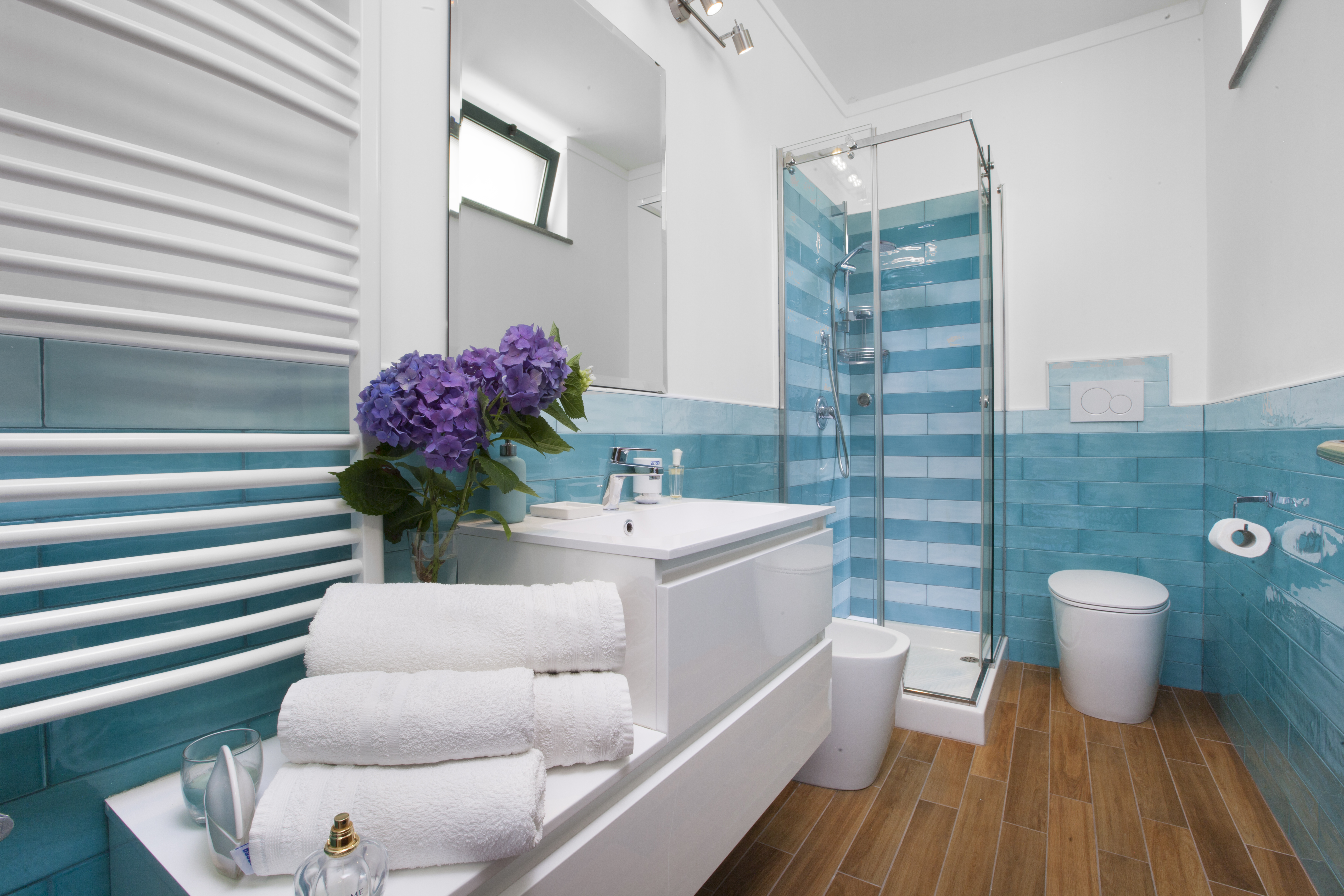 IL SECONDO BAGNO (adiacente alla seconda e la terza camera da letto) è dotato di lavabo, bidet, wc, box doccia e asciugacapelli. Raggiungerete il bagno dal corridoio.