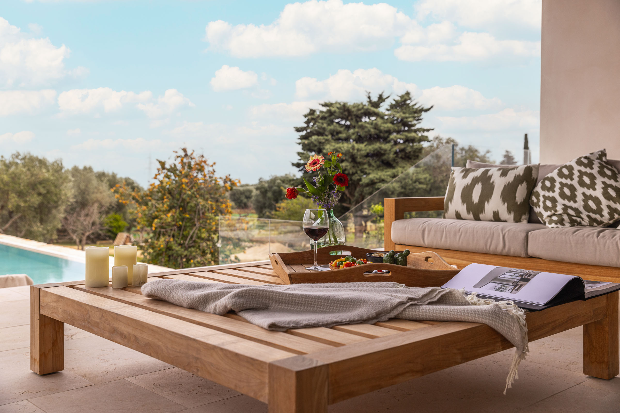 La Villa presenta prestigiosi arredi di design: un grande salone con ampie vetrate e vista sulla piscina, regale un panorama da sogno anche durante una deliziosa cena all’interno. La moderna cucina a isola è un invito a organizzare corsi cucina e serate a tema “pugliese”.