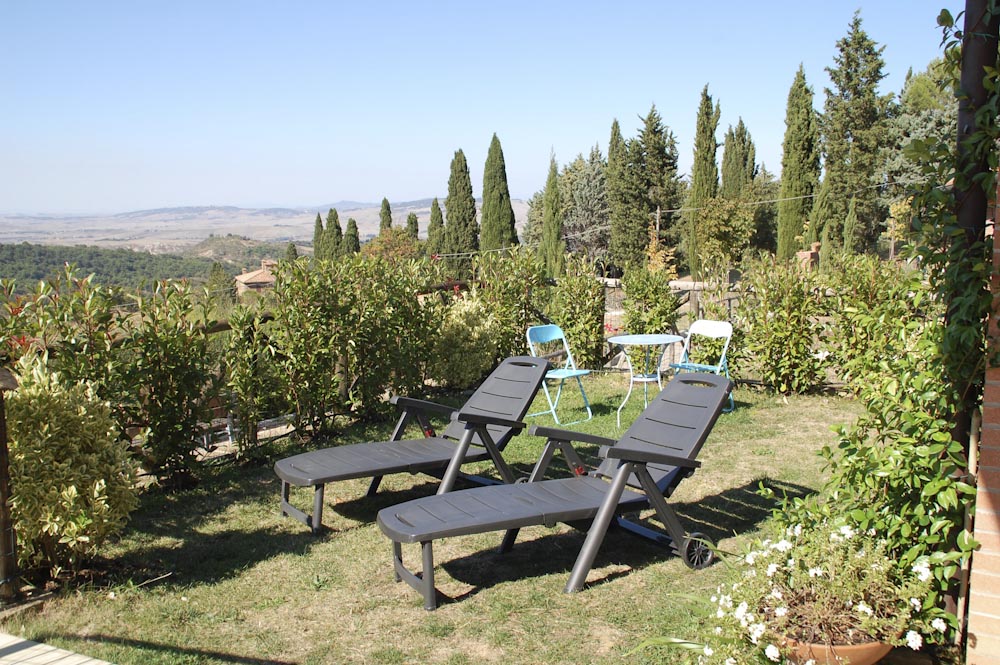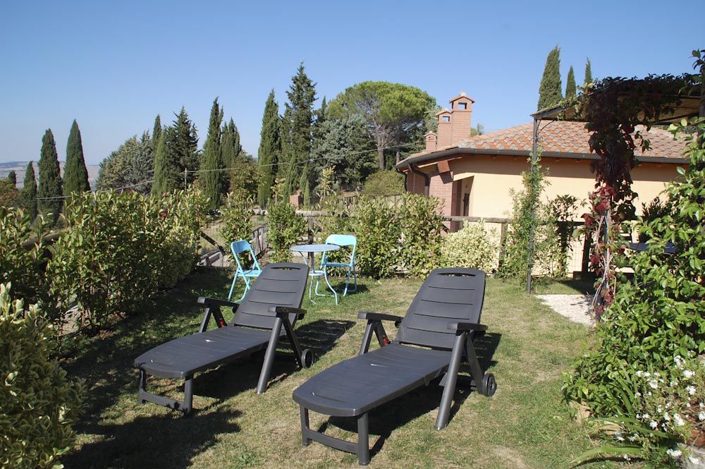 A disposizione degli ospiti 3 lettini, 2 sdraio, barbecue mobile. La cucina è completa di lavastoviglie, forno, forno a microonde, caffettiera elettrica, macchina per caffè americano. Possibilità di aggiunta di una culla a richiesta. La villetta si trova in una collina in posizione panoramica con una bellissima vista sulla Val D''Orcia.